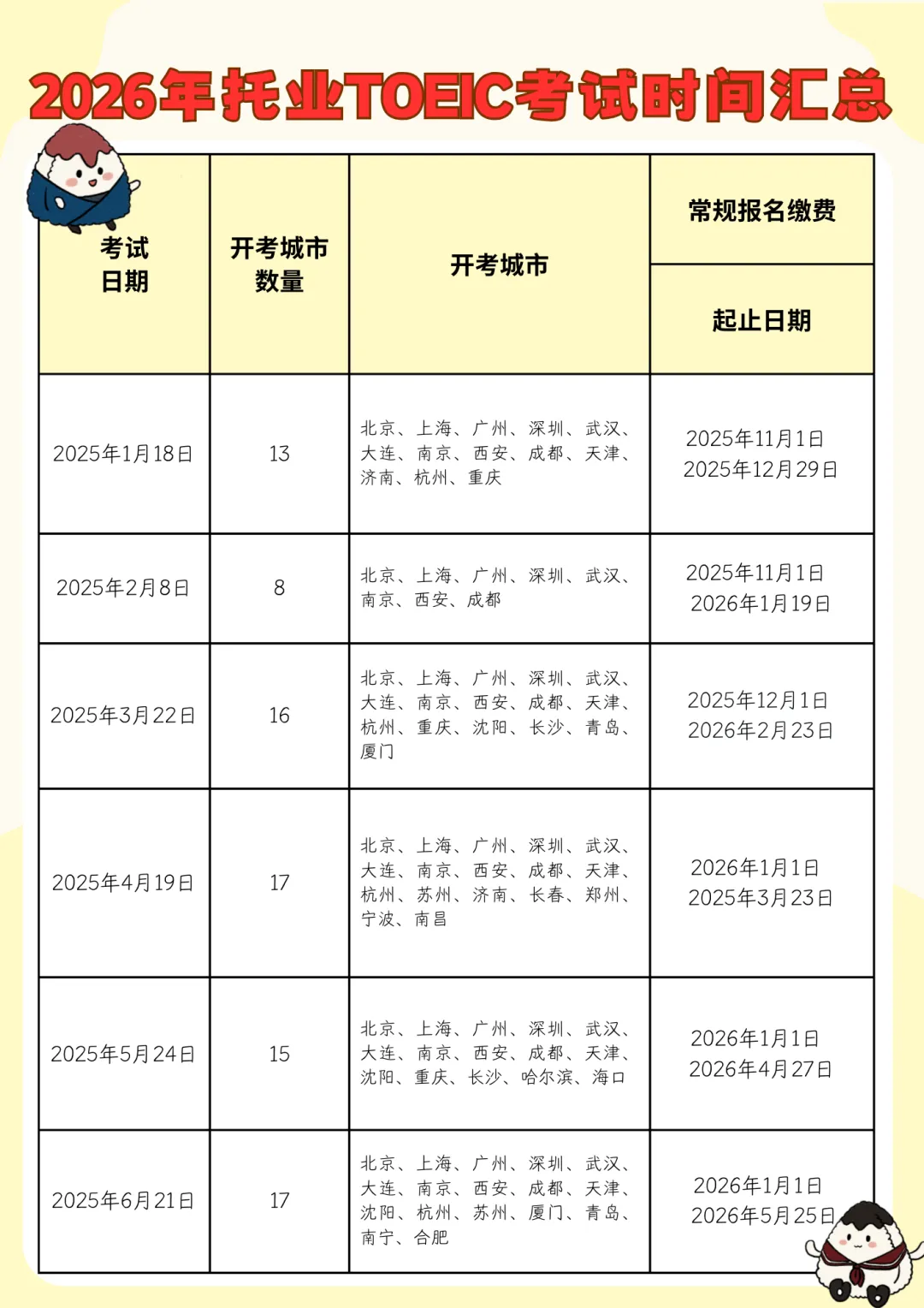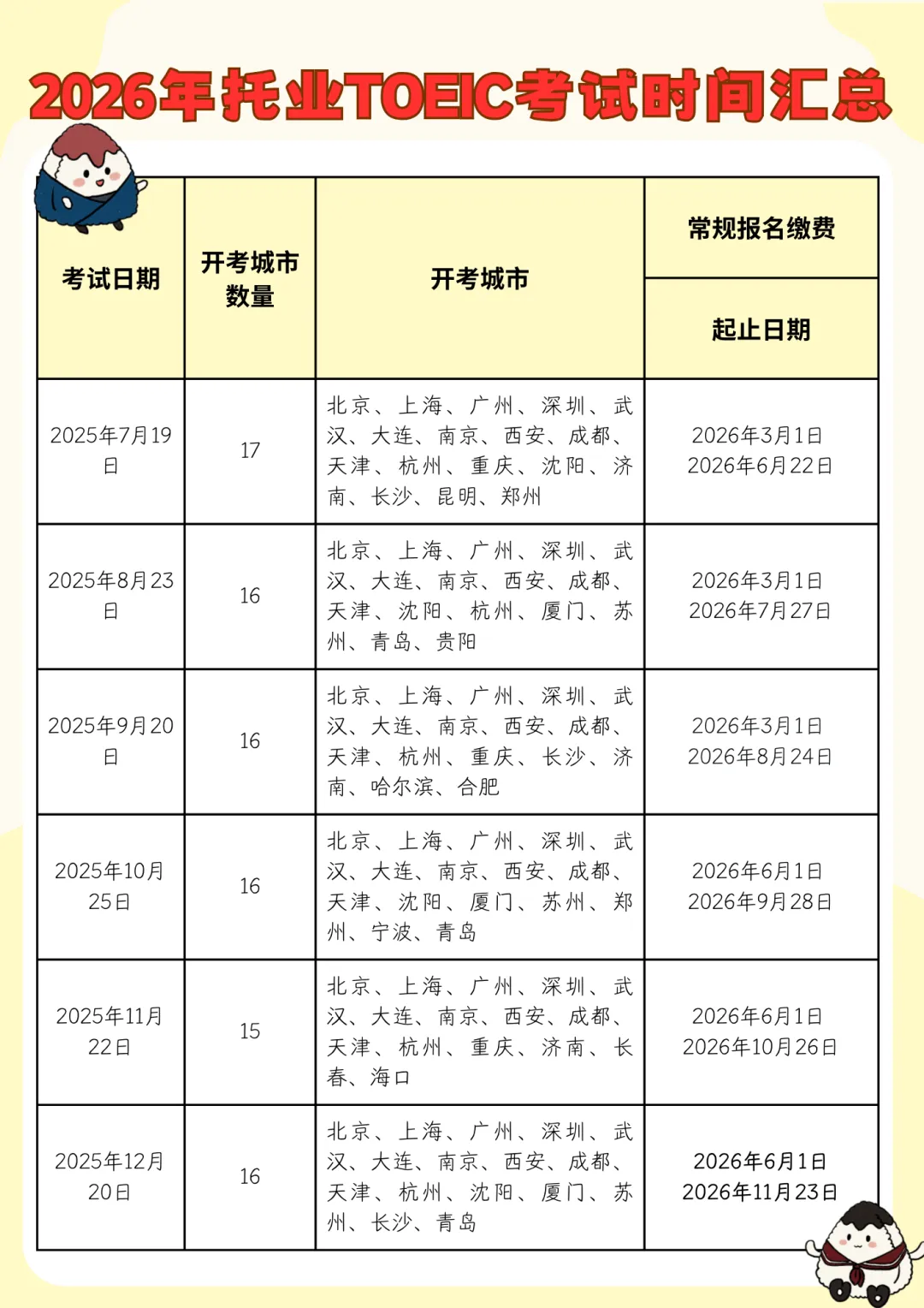 左右滑动查看2026年托业考试时间