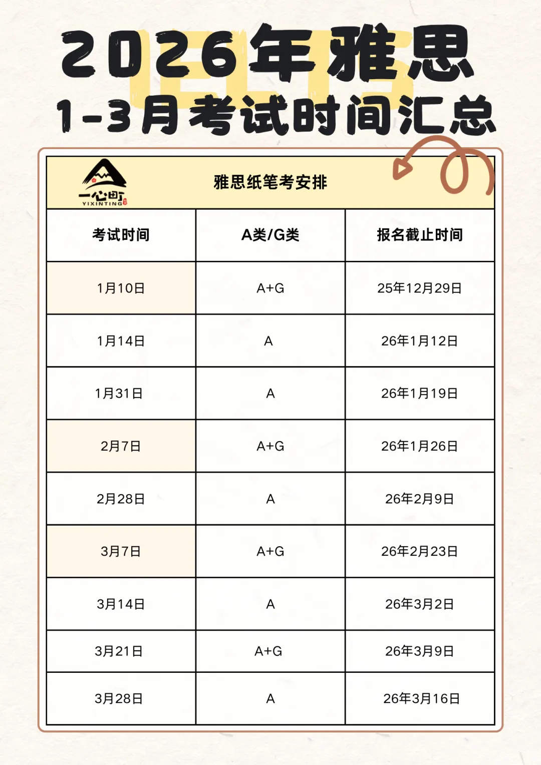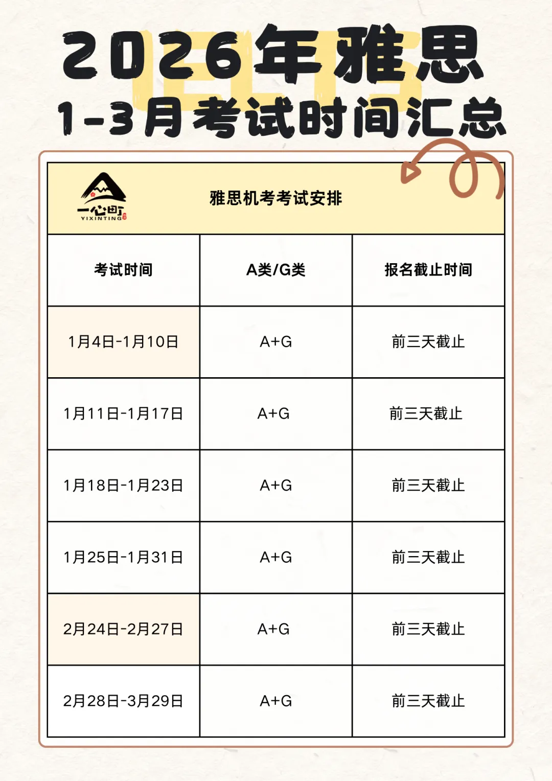 左右滑动查看2026年1~3月雅思考试时间