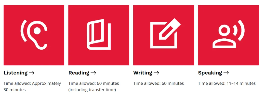 TOEFL iBT考试是由4个部分组成:阅读、听力、口语和写作。