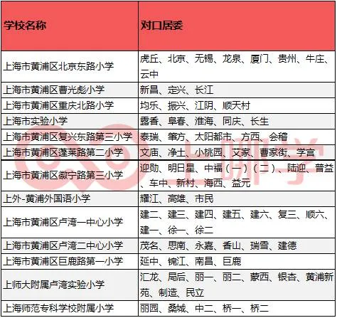 值得一提的是,黄浦区也已经于2016年开始实行“五年一户”政策了,来看看对口情况: