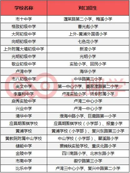 黄浦区小升初对口情况