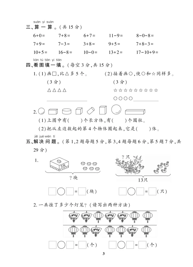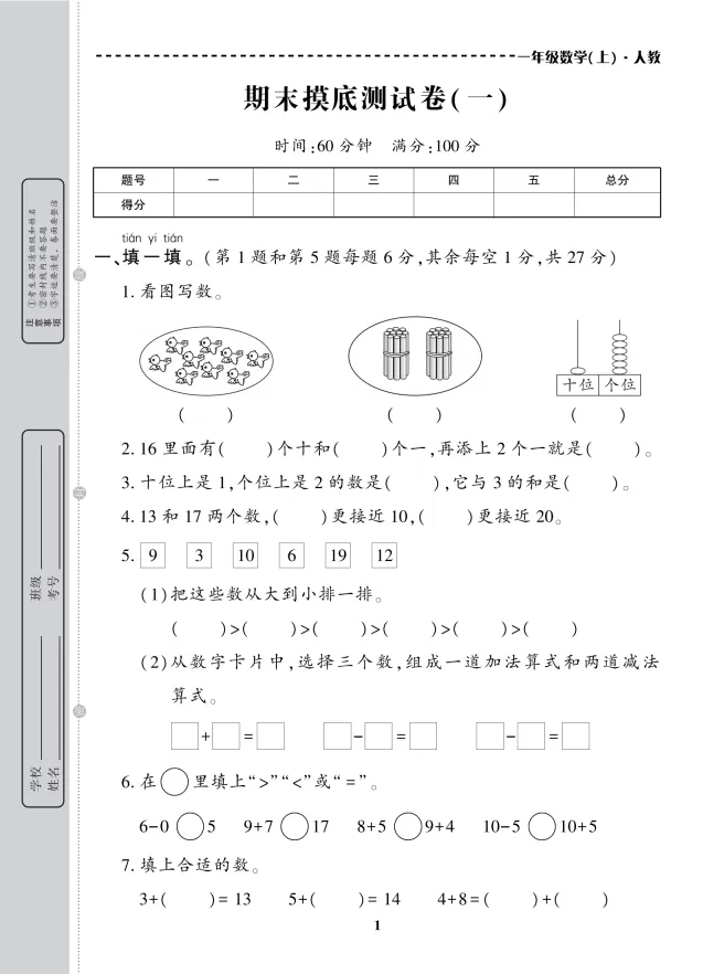 >25秋小学数学1-6年级上册《期末考试卷》(人教版)| 可下载打印