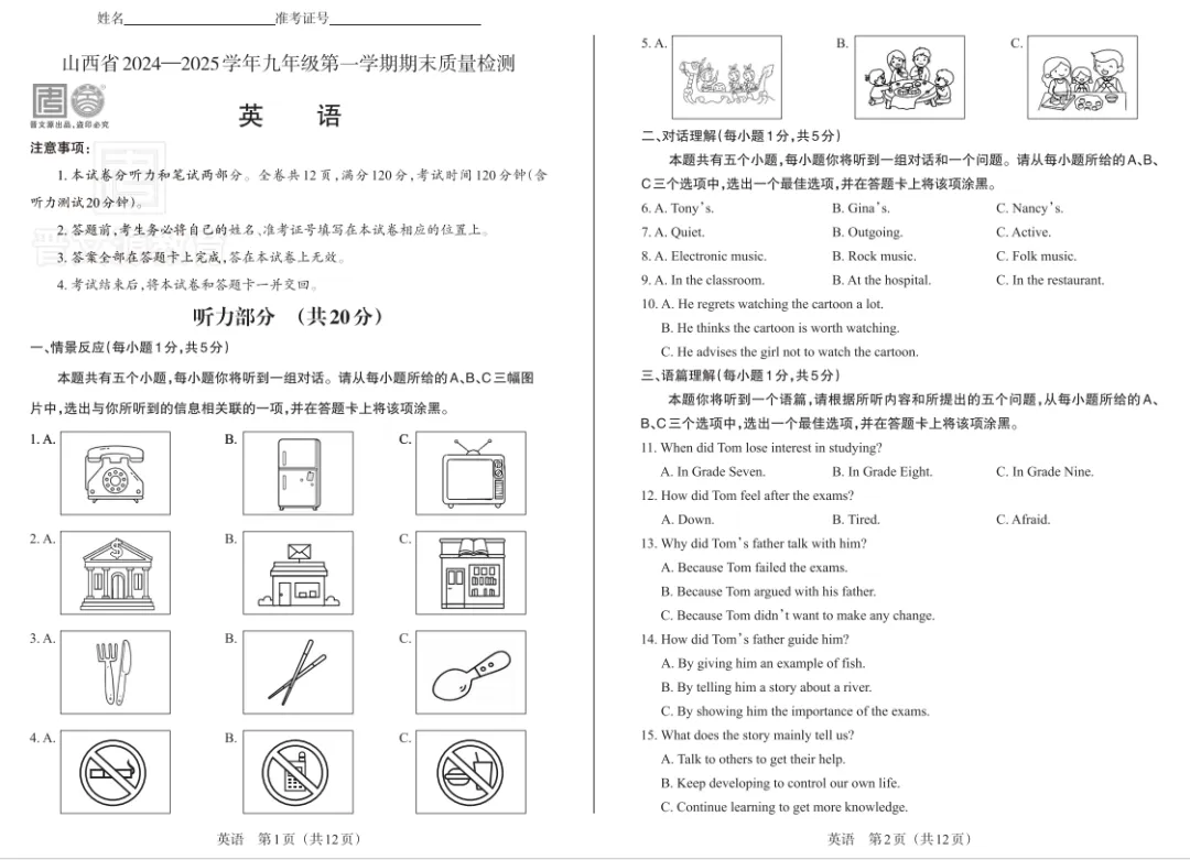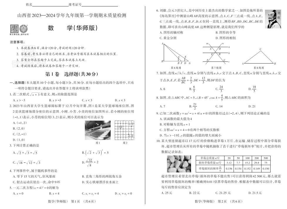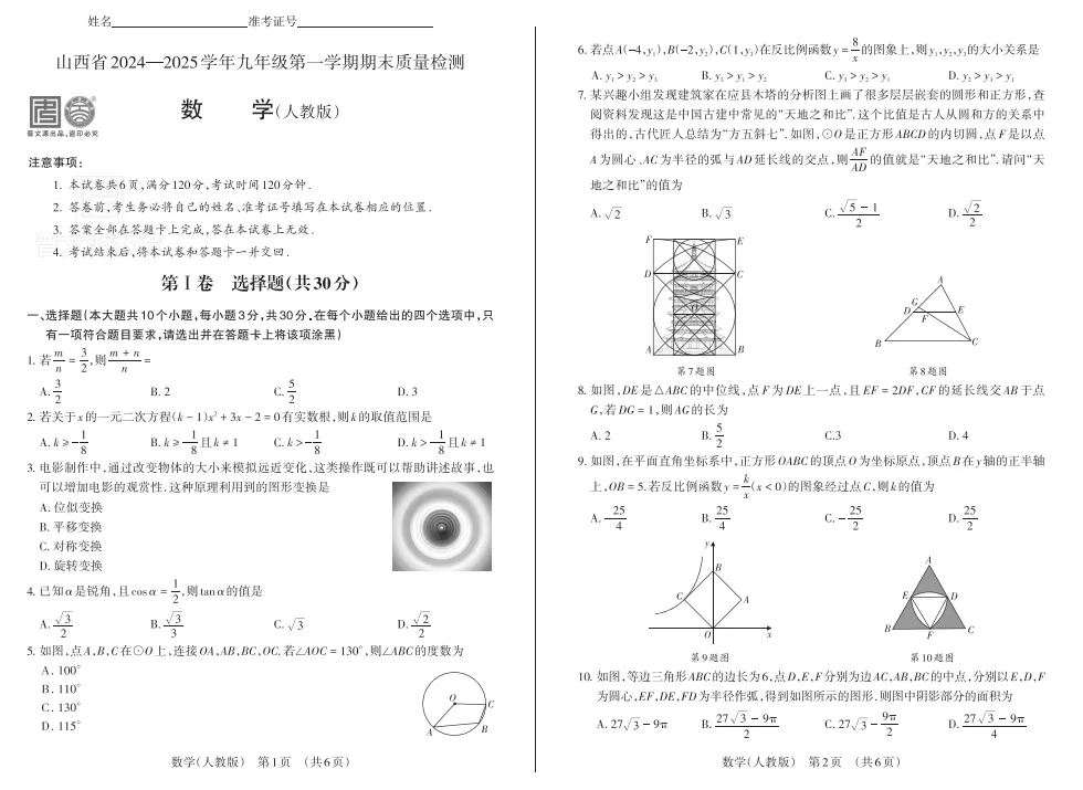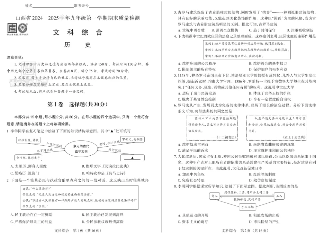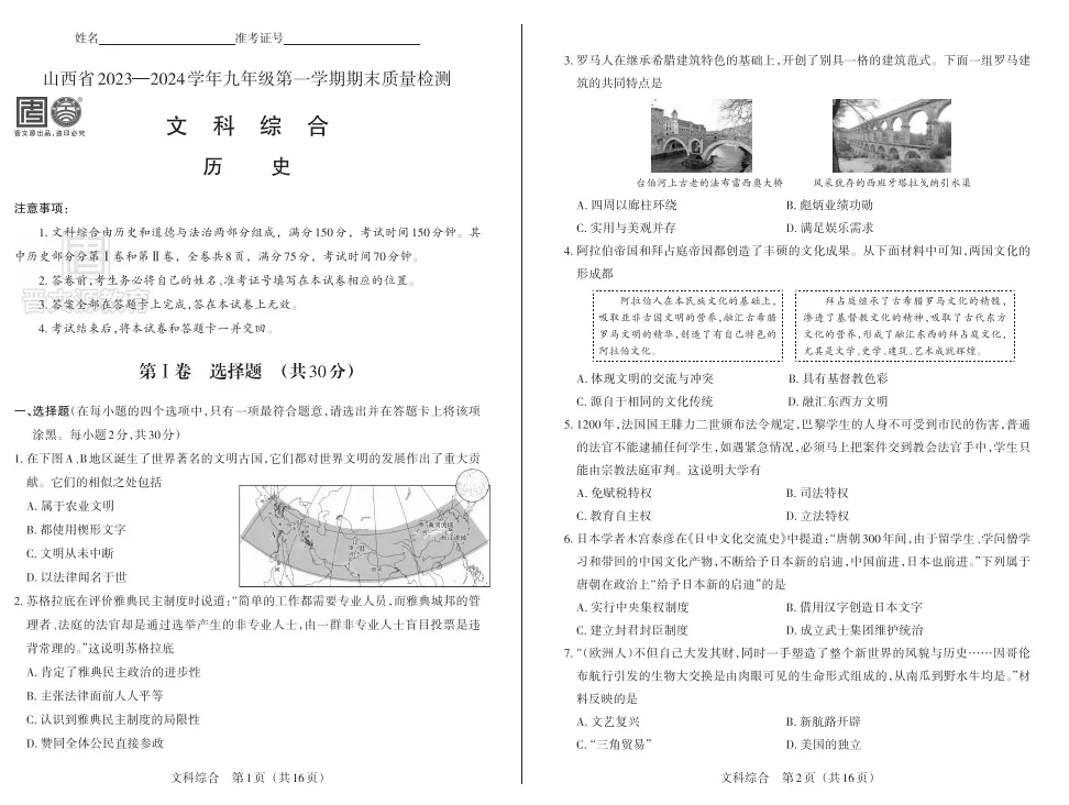 >【期末试卷】山西省九年级近两年期末考试试卷及答案免费下载
