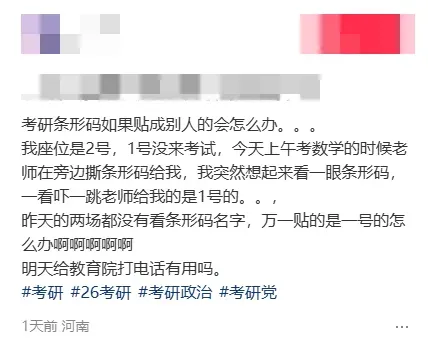 每年考研期间,均会出现部分考生因个人疏忽,发生信息填写失误、条形码漏贴等问题。此外,也存在极少数因监考人员操作疏漏,导致考生条形码错贴的情况。