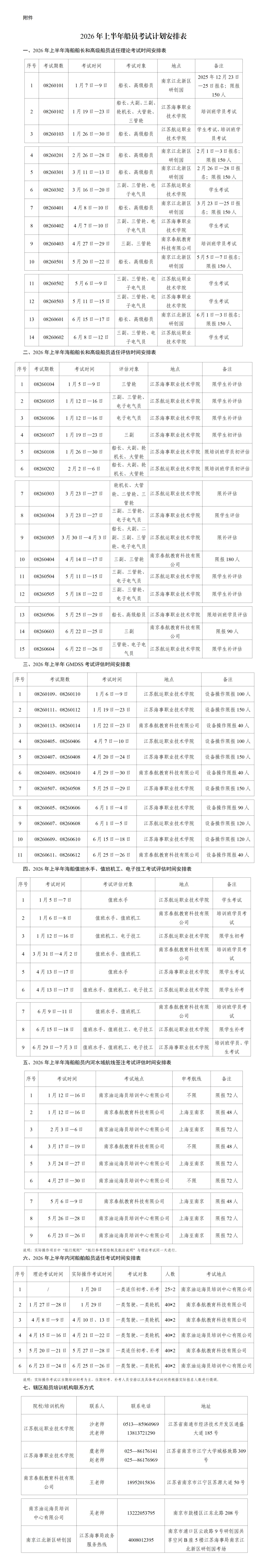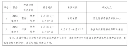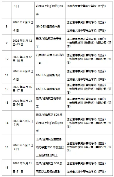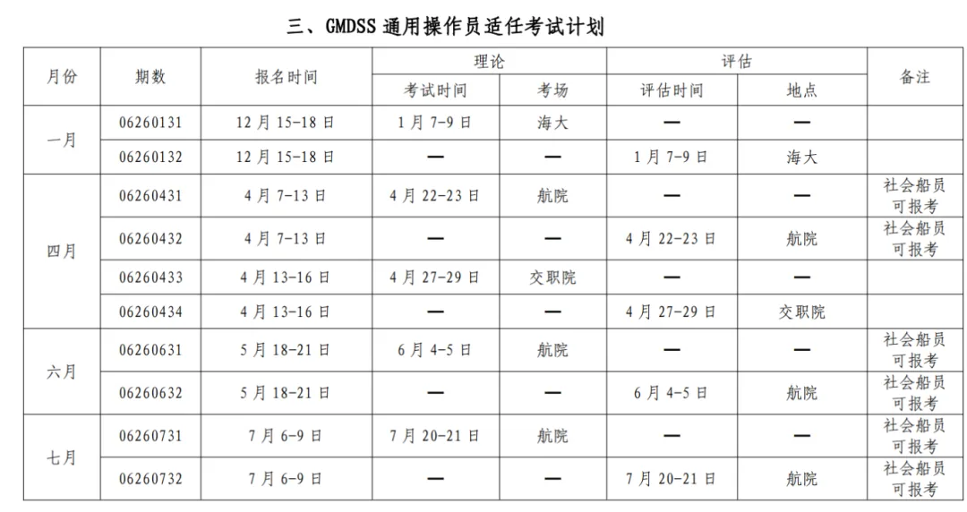 2026年上半年GMDSS操作员理论考试1期,适任评估1期。具体时间安排请见附件3。