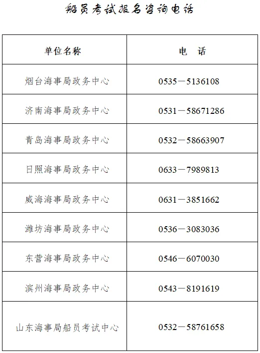 6.报名受理部门:天津海事局船员考试中心,报名咨询电话:022-58870034转1。