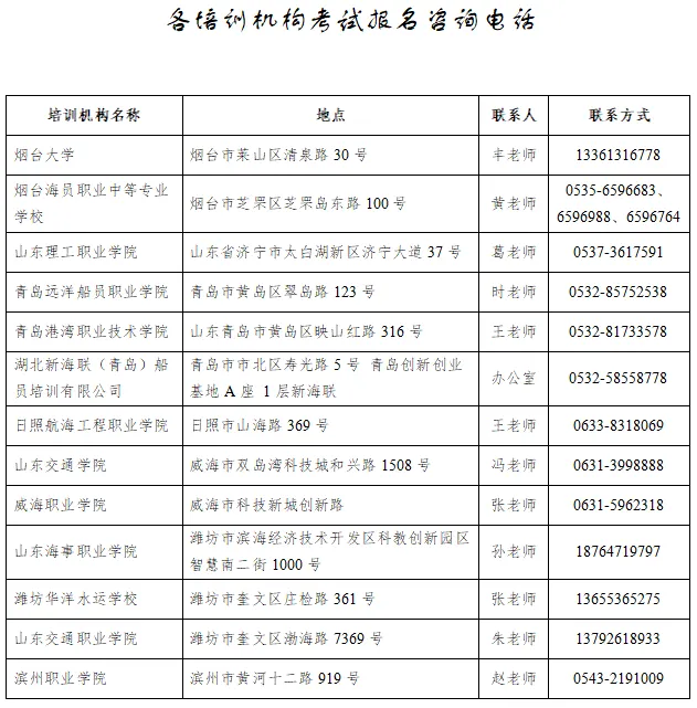 (二)海事管理机构及培训机构咨询电话,详见如下: