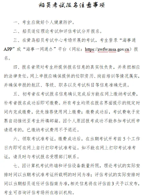 报名方式:登录“海事通APP”或“海事一网通办”平台(网址:https://zwfw.msa.gov.cn)报名。