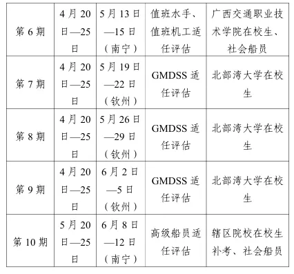 限于在连云港海事局辖区船员培训机构培训的初考及后续补考考生。考生需通过所在培训机构统一报名参加考试,具体考试计划安排如下: