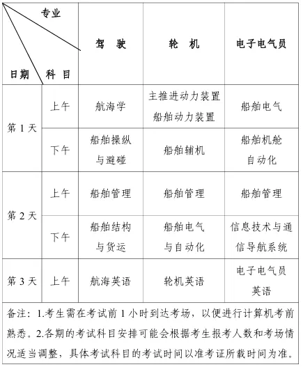 无限航区、沿海航区海船船员适任考试全部采用计算机终端考试方式,具体安排如下: