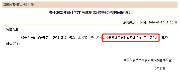 据中国科学技术大学研究生招生办公室通知,硕士招生考试复试分数线公布时间预计将在4月中旬左右。