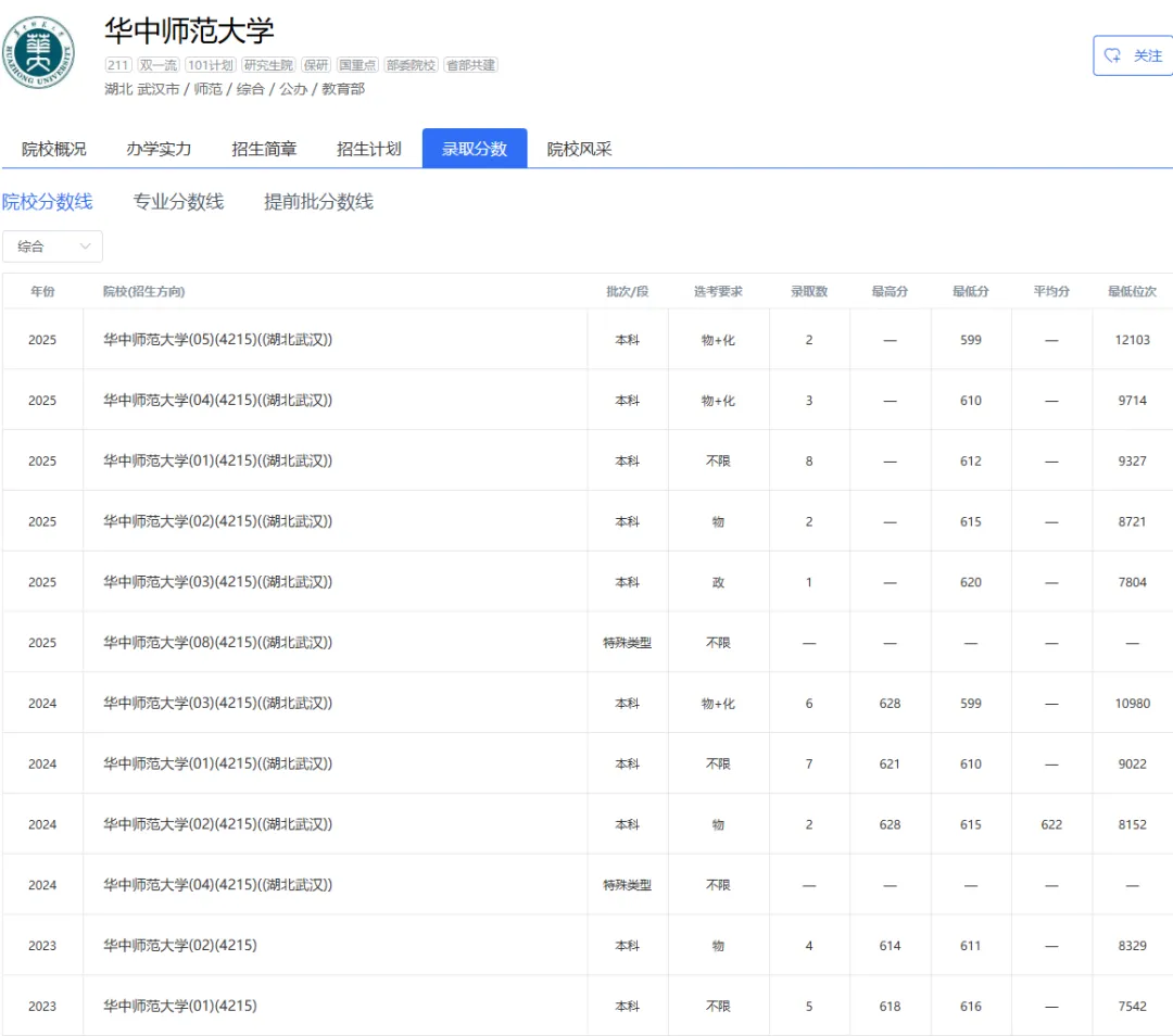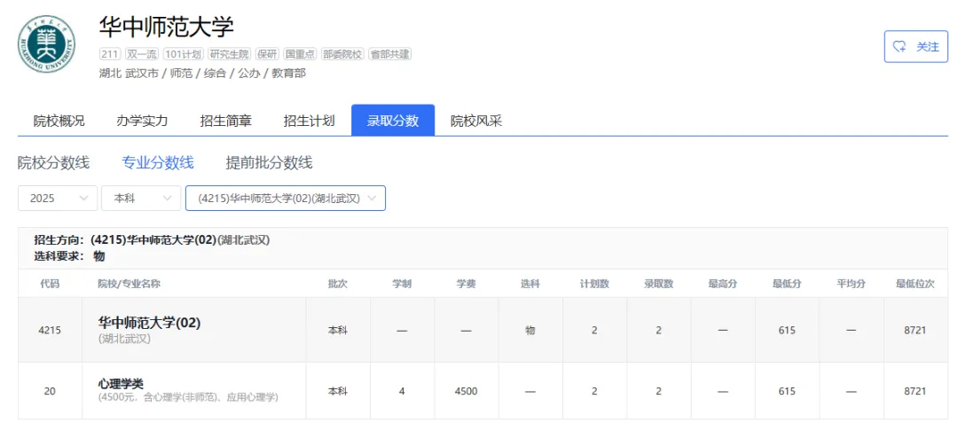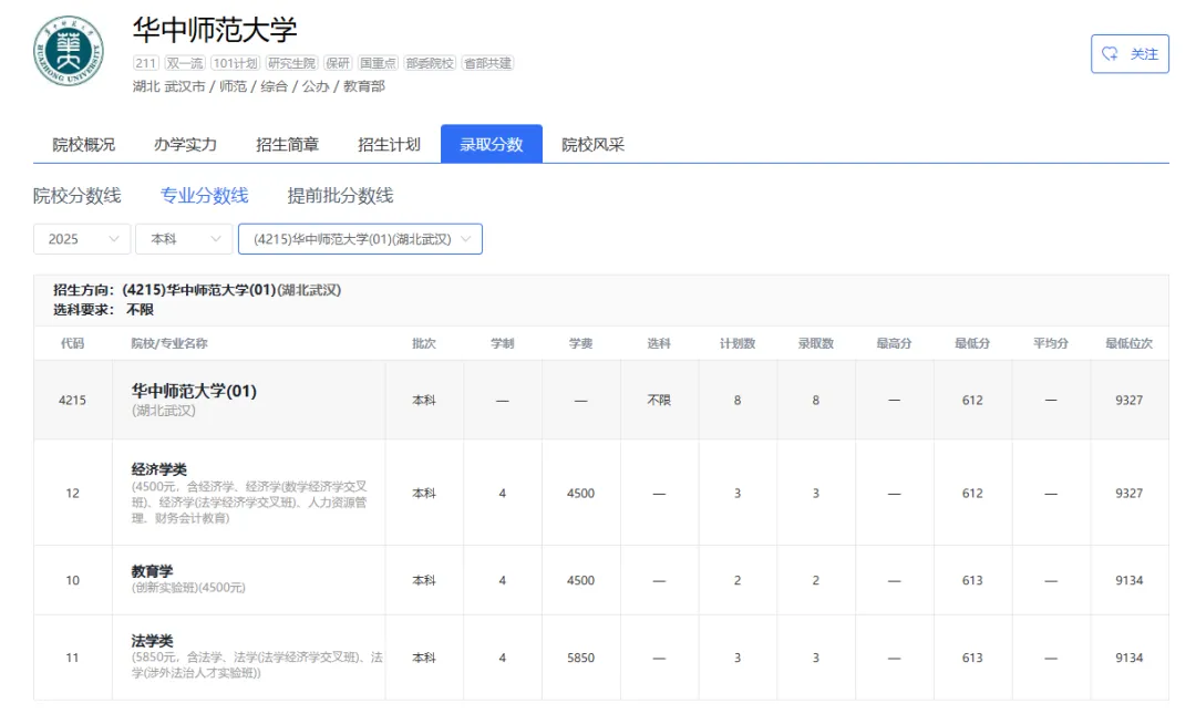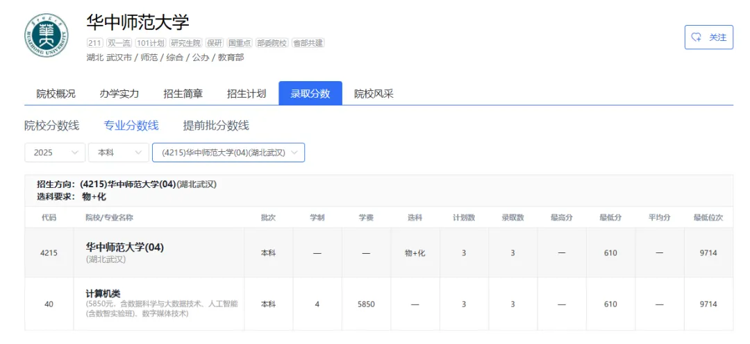 2025年|华中农业大学在京最低录取分数线及位次排名