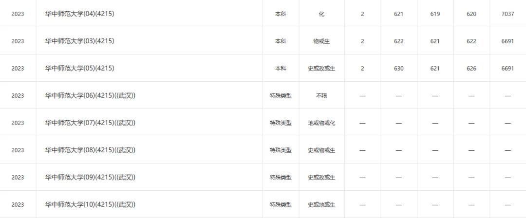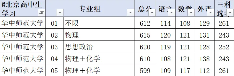 华中师范大学 01 不限 612