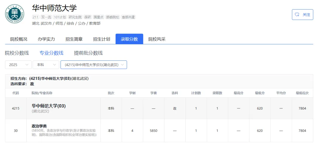 华中师范大学 03 思想政治 620