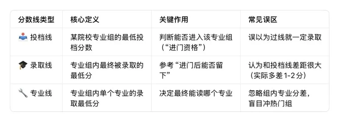 志愿填报季一到,家长和考生就被“投档线”“录取线”“专业线”绕得晕头转向!不少人拿着分数对照往年数据,以为稳了却惨遭滑档,核心原因就是没搞懂新高考的分数规则——原来“学校线”早已成为过去,“院校专业组”才是填报关键!今天用最通俗的语言拆解三大分数线,帮你把每一分都用在刀刃上~
