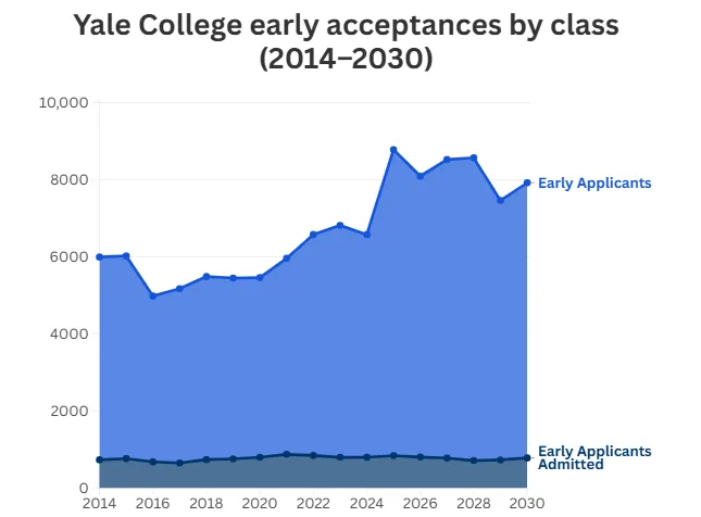 2025-26申请季,耶鲁大学共收到7,140份SCEA申请,其中779名学生被录取,SCEA录取率为10.9%,较去年的10.8%有小幅度上升。