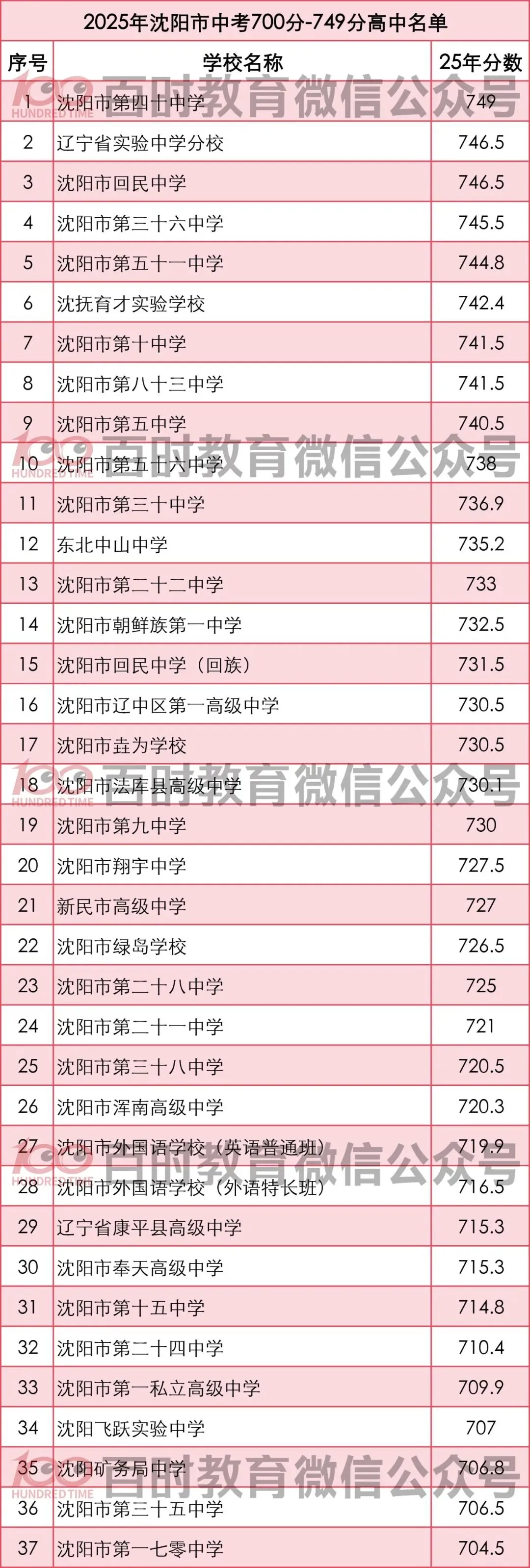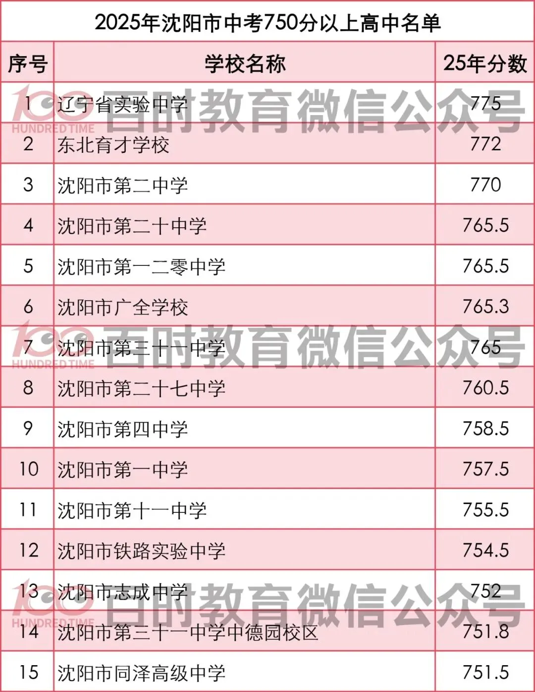辽宁省实验中学、东北育才、沈阳二中位居前三;