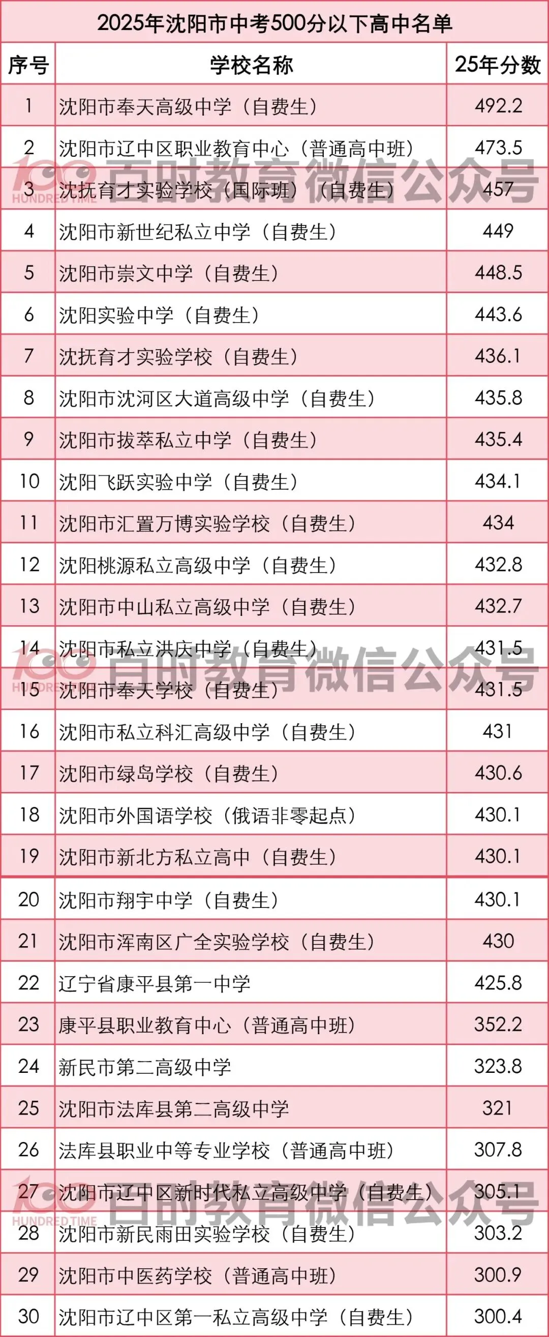共30所,分数范围:492.2 → 300.4。代表性学校: