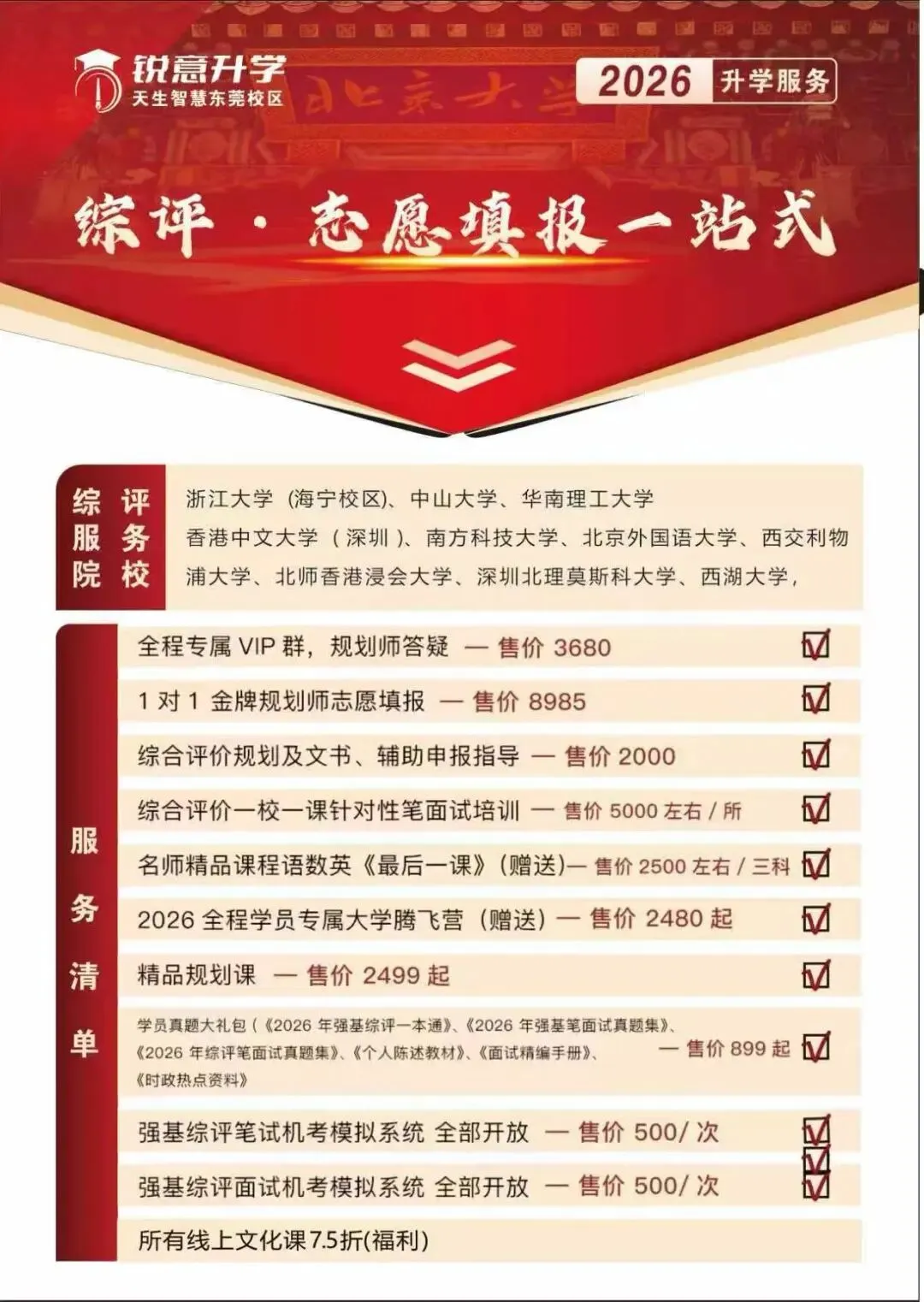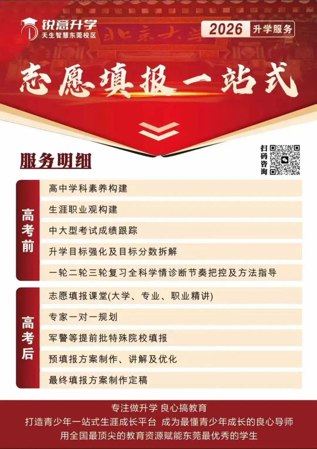 讲座中反复提及的“提前规划”,正是升学成功的关键。锐意升学东莞校区深度融合本地考情与前沿动态,现正式推出核心服务产品,为您将规划蓝图变为现实!