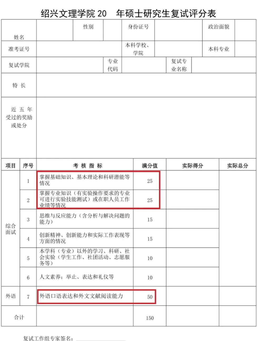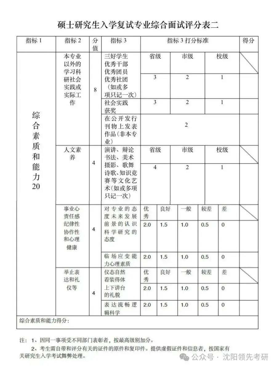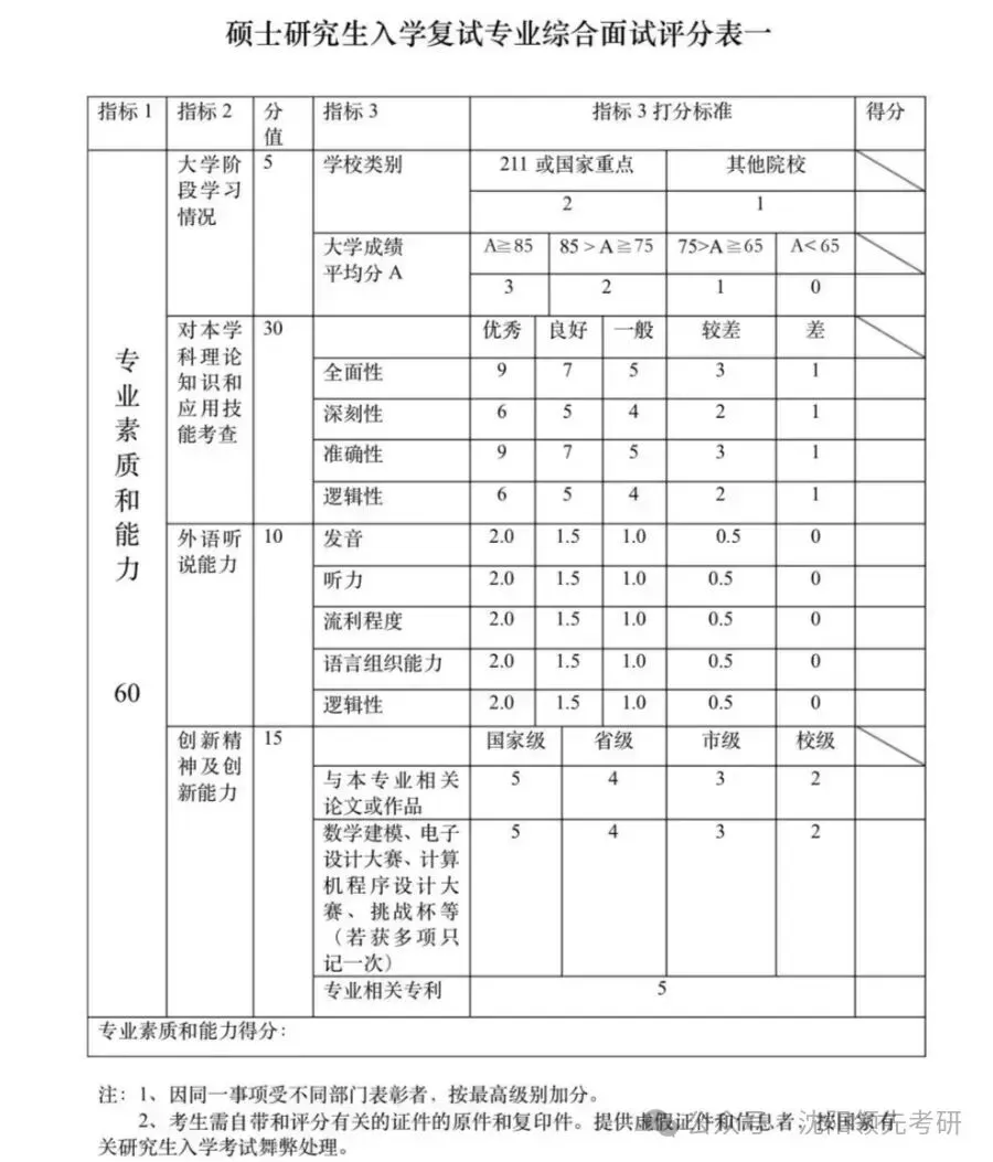 24考研复试评分标准