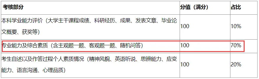 看了上面的这些评分表和打分标准,会发现复试考察的内容可以概括为:其中分值占比最高的还是专业知识和综合能力,这能反映你目前对专业的理解。当然英语水平能力也是很重要的。所以大家按照上面标准把握重点,对于专业知识可以着重备考!等成绩这一段时间可以不要浪费,争取在复试的时候展示最优秀的自己!