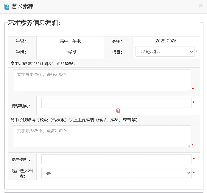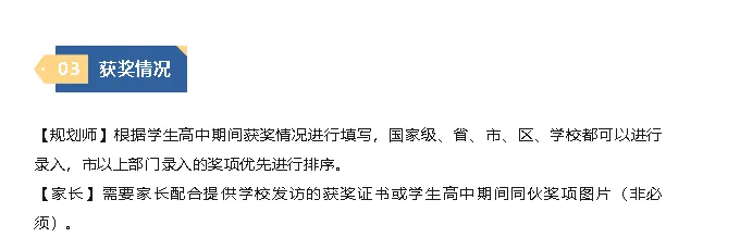 规划师可根据家长提供学生在校参加活动内容进行填写;如因高中生在校期间艺术素养类活动较少的情况下,规划师会从赏析角度针对某个项目进行填写。