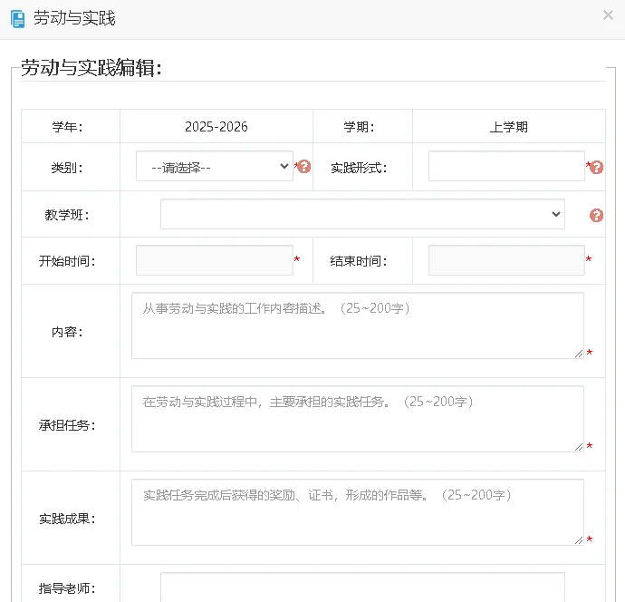 劳动与实践填写选择一个类别填写即可,建议选择职业体验活动进行填写。规划师会围绕着一个岗位体验活动进行填写,并在佐证材料处上传活动佐证材料。