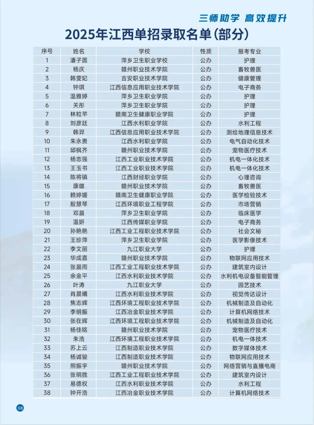 靠谱的机构,从不靠口头承诺,而是用成绩证明实力 。虔优教育多年来持续创造高升学率奇迹,助力大批赣州学子通过单招、职教高考,考入环境、司法、医卫、财经等江西省内优质院校,实现升学梦想 。