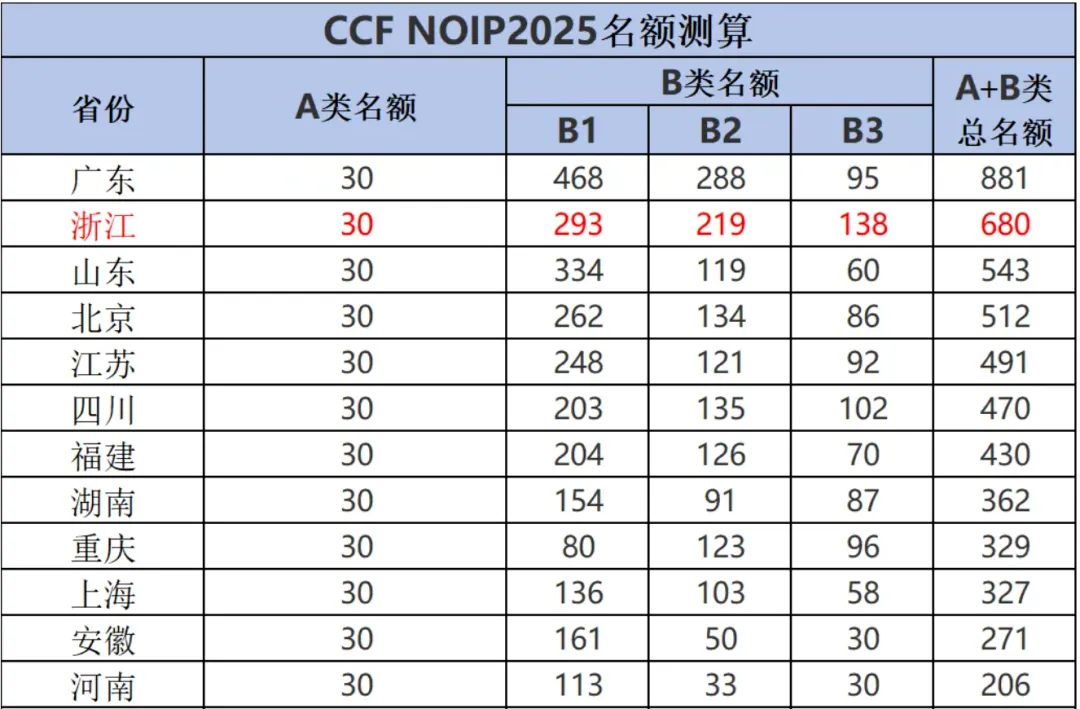 关于NOIP的名额分配,CCF会提前公布方案。近年来名额主要分为三类:A类(基本名额)、B类(激励名额)和C类(推荐名额),所有类别参赛者均须为高中生。