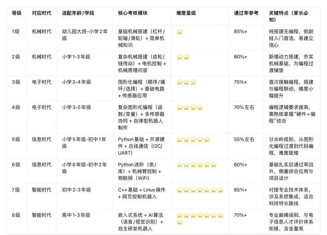 娃学机器人必看!机器人等级考试1-8级到底怎么选?不同年级考几级?难度差多少?一篇讲透全级别核心要点,新手家长直接照抄规划,不花冤枉钱、不绕冤枉路!