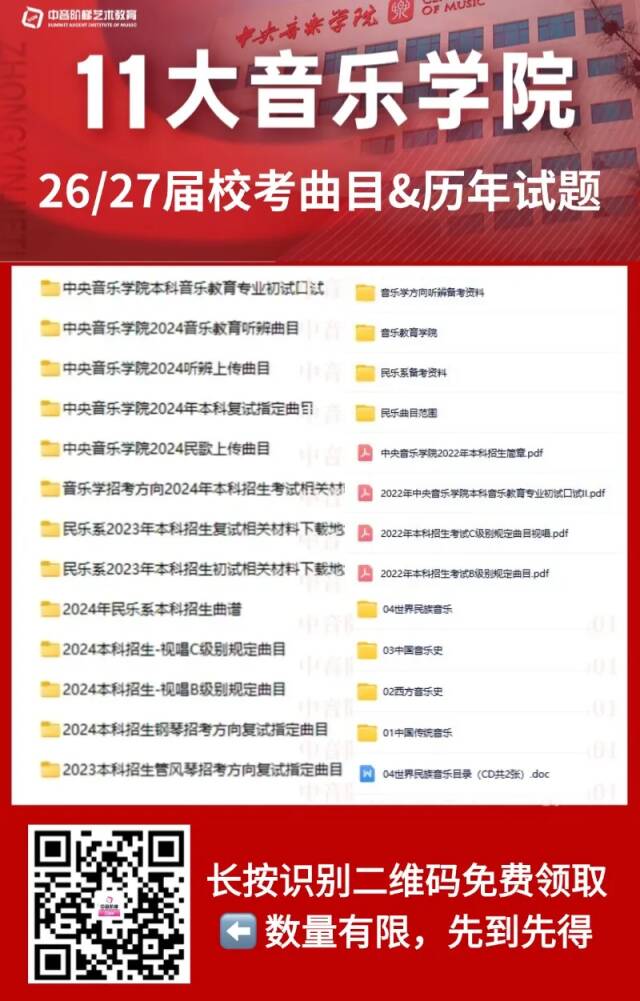 为帮助音乐生提高上岸率,小音老师为大家准备了6大惊喜好礼,🎁校考音乐学院官方指定曲目库、央音老师线下授课指导名额、校考省统考试题、小三门乐理听音大师课、11大音乐学院报考指南等尽在其中,26、27、28届及以下年级音乐生快快行动起来吧!