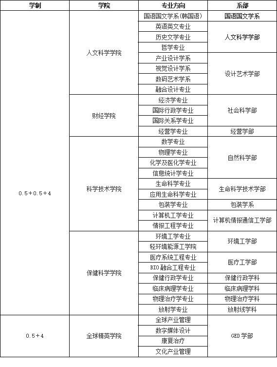 注:以上以延世大学为例可选专业达30+