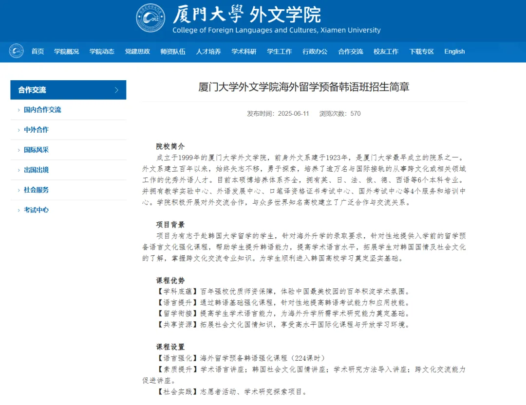 厦门大学外文学院海外留学预备韩语班