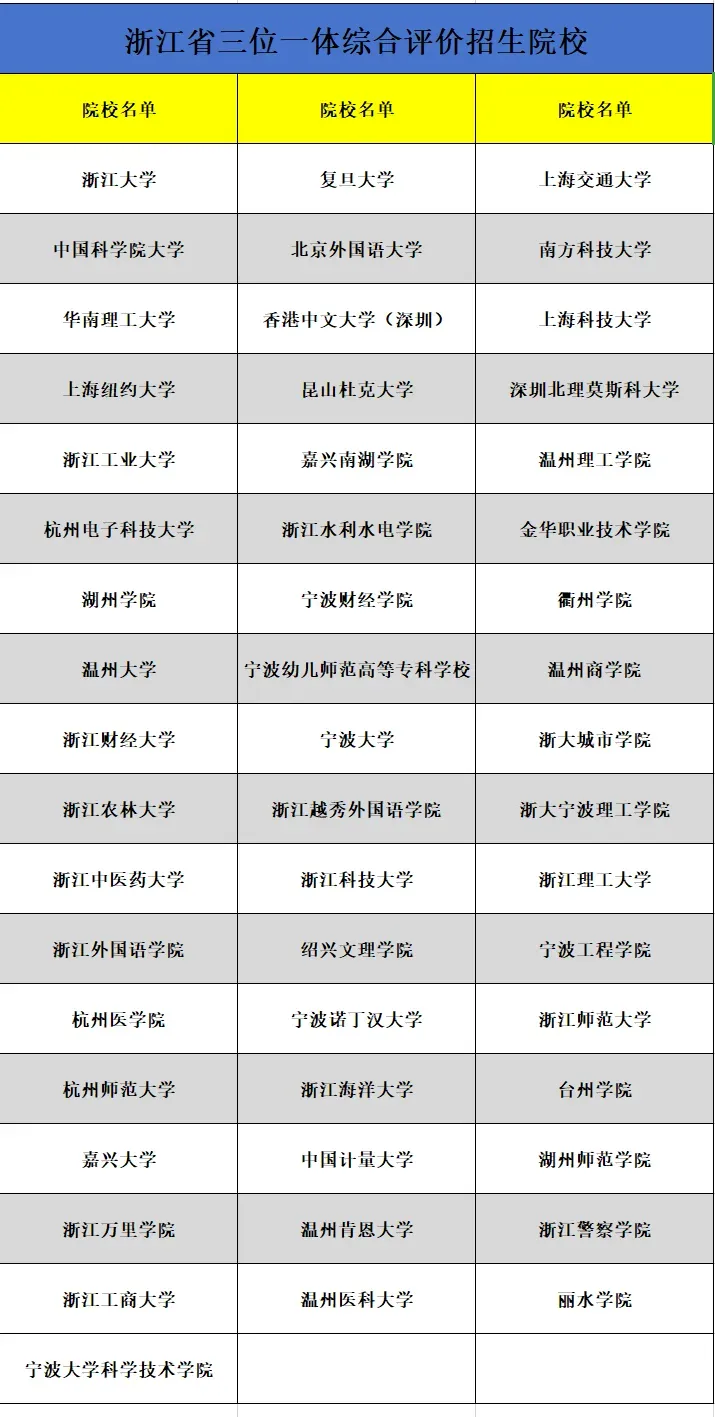 虽然杭州只有浙江大学一所985,但是浙江综合评价省属高校的分数线、含金量、认可度、教育水平等绝对不低于外省的某些双一流!对于一些综合素质优秀,但是高考成绩落后的浙江考生来说,浙江三位一体综合评价提供的降分给予了多一次冲刺梦想大学的机会!