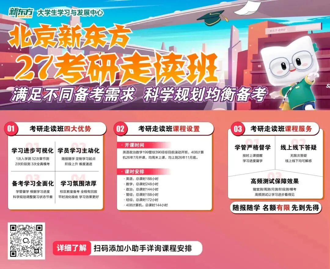 更多详情,可扫描上方二维码咨询课程小助手,或点击后方文字了解~(27考研辅导推荐,北京新东方考研线下班!)