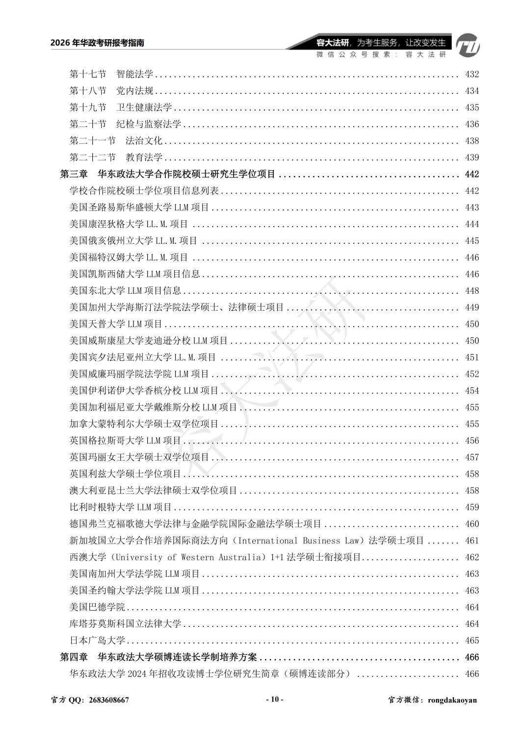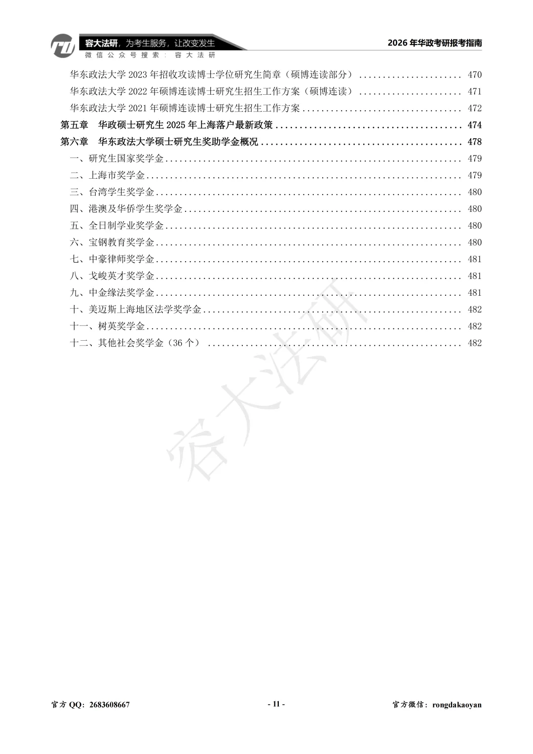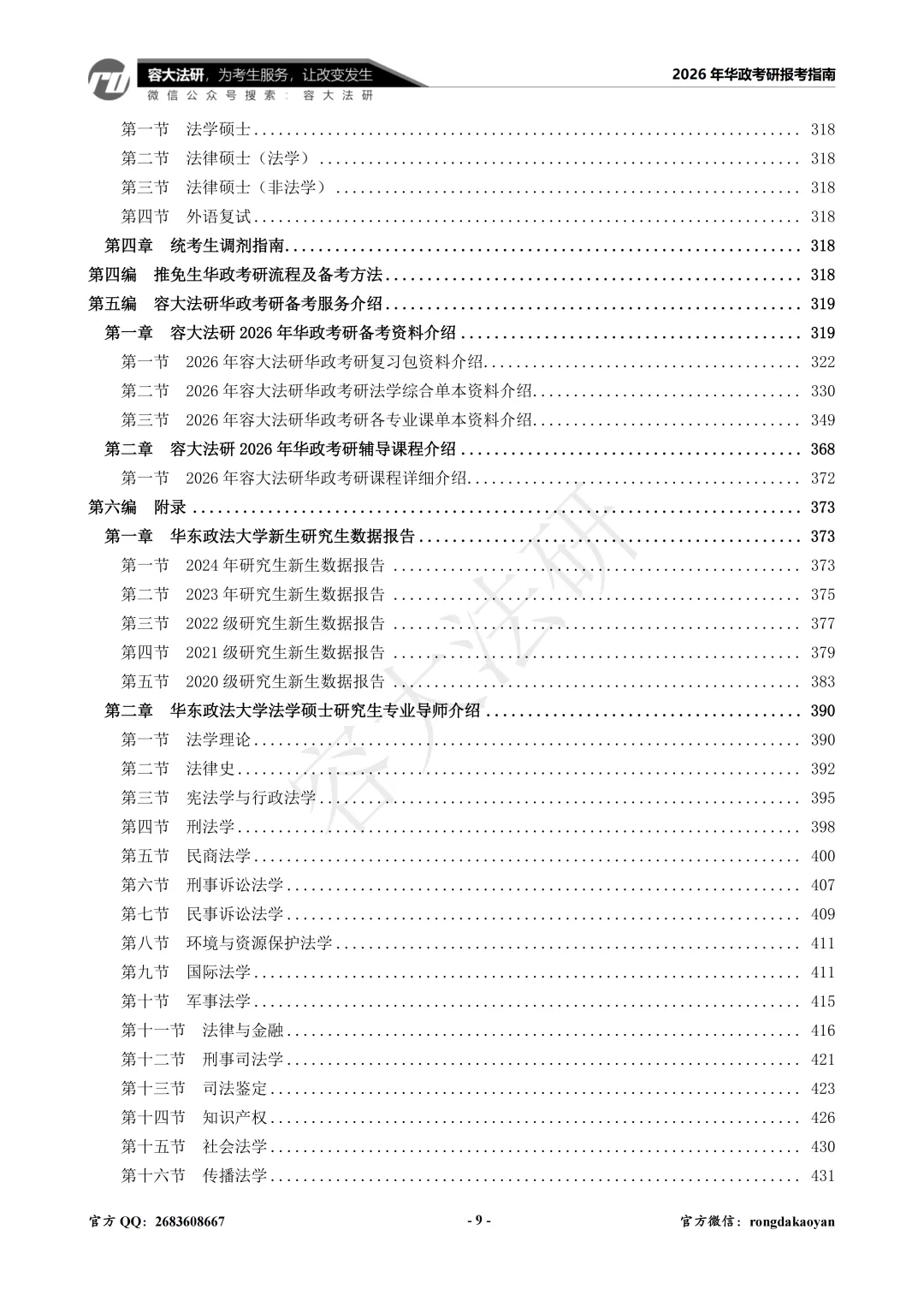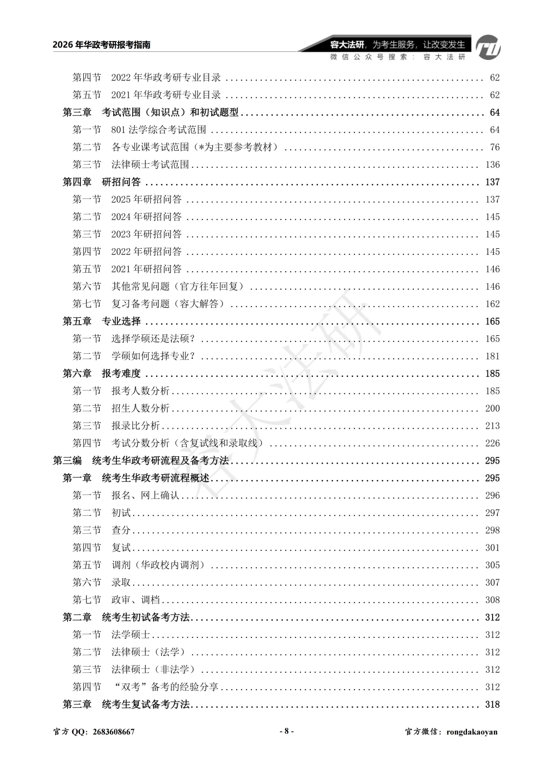 1.《华政考研报考指南》目录: