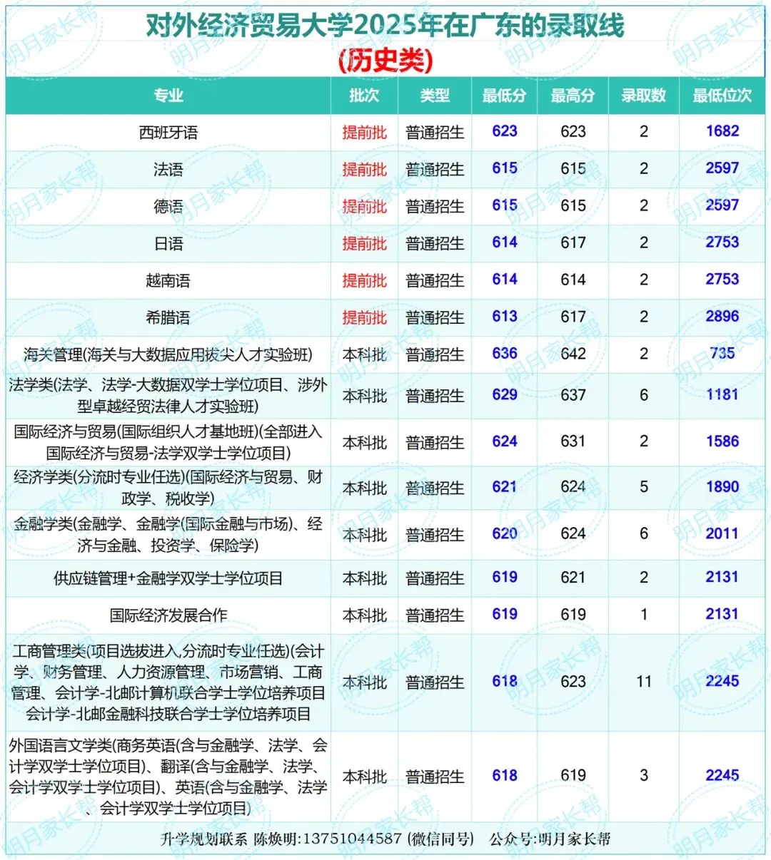 对外经济贸易大学2025年在广东的录取分数线