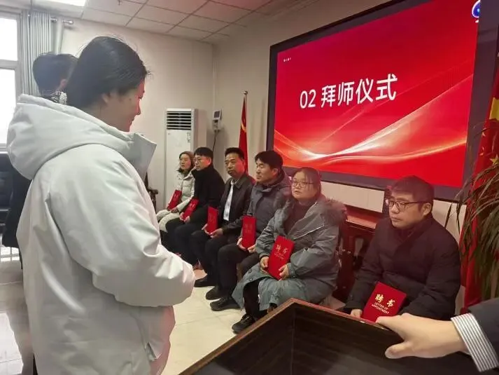 随后,最庄重的拜师结对环节顺利开展。首先,副校长张宗杰、李仁永为各位导师颁发了聘书;紧接着,青年教师怀着崇敬之心,向各自的导师行拜师礼,鞠躬致敬间,满含着对导师的敬意与求知的热忱。礼毕后,师徒双方郑重签订结对协议书,一笔一划间,不仅定格了师徒携手共进的约定,更凝聚了学校对教师队伍建设的深切关怀。