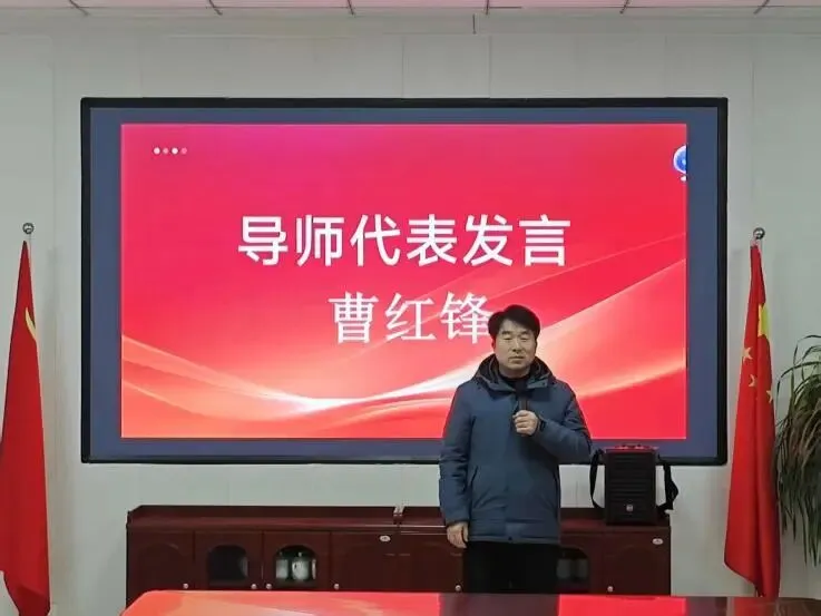 青蓝赓续,匠心传承。仪式最后,校长齐鲁金在寄语中,首先向肩负重任的导师们致敬,对青年教师成长寄予厚望。他强调,“青蓝工程”是学校教师队伍建设的核心举措,导师须尽心“传帮带”,徒弟应主动勤学、大胆探索。师徒要互学共进,既要夯实教案编写、课堂管理等传统基本功,也要积极融合现代教育技术,推动教学创新。他勉励青年教师以奋斗之姿,在育人实践中挥洒青春,为学校高质量发展贡献蓬勃力量。期盼通过此次结对,有效发挥“传帮带”作用,合力推动学校教育教学工作再上新台阶。