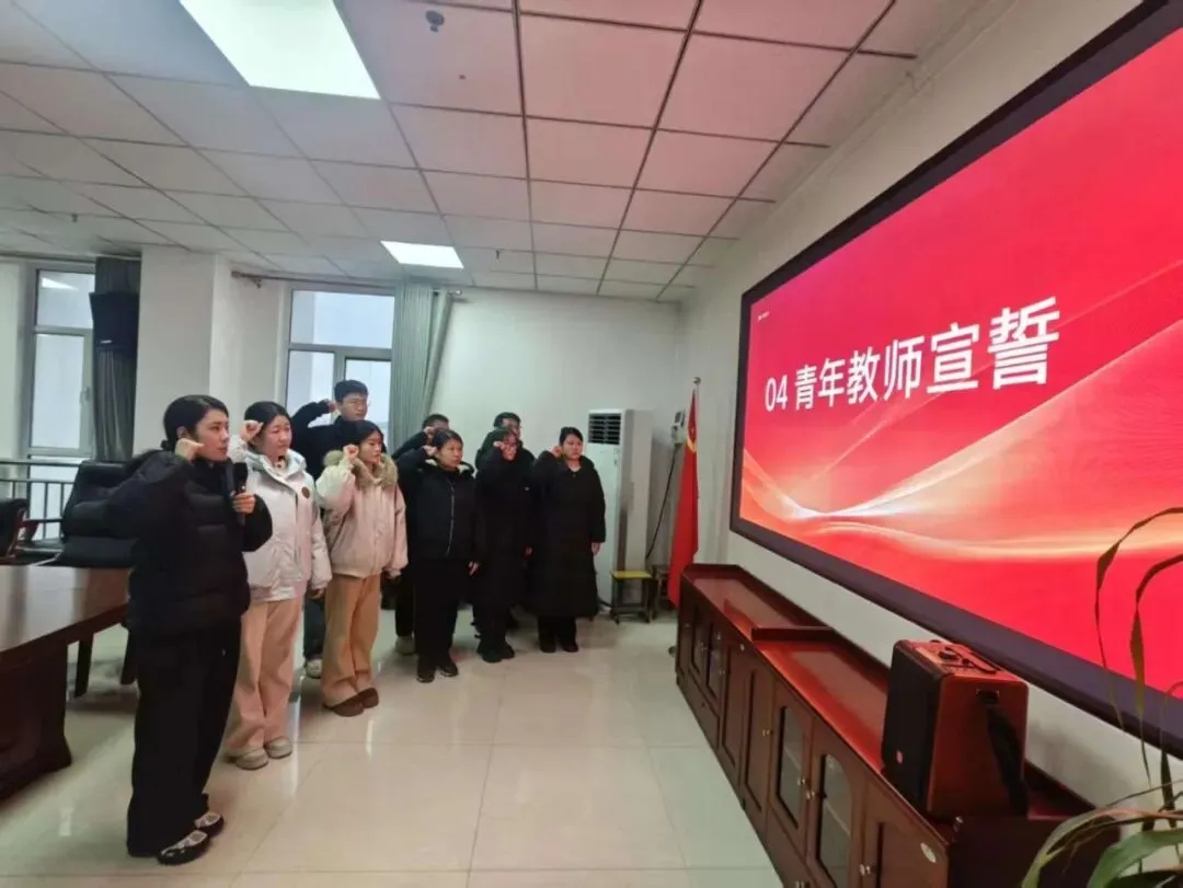 在宣誓环节,全体青年教师面带赤诚,高举右拳,庄严宣誓,铿锵有力的誓言回荡在会场之中,不仅是对教育事业的郑重承诺,更是对自身成长的严格要求,彰显了新时代青年教师的责任与担当。