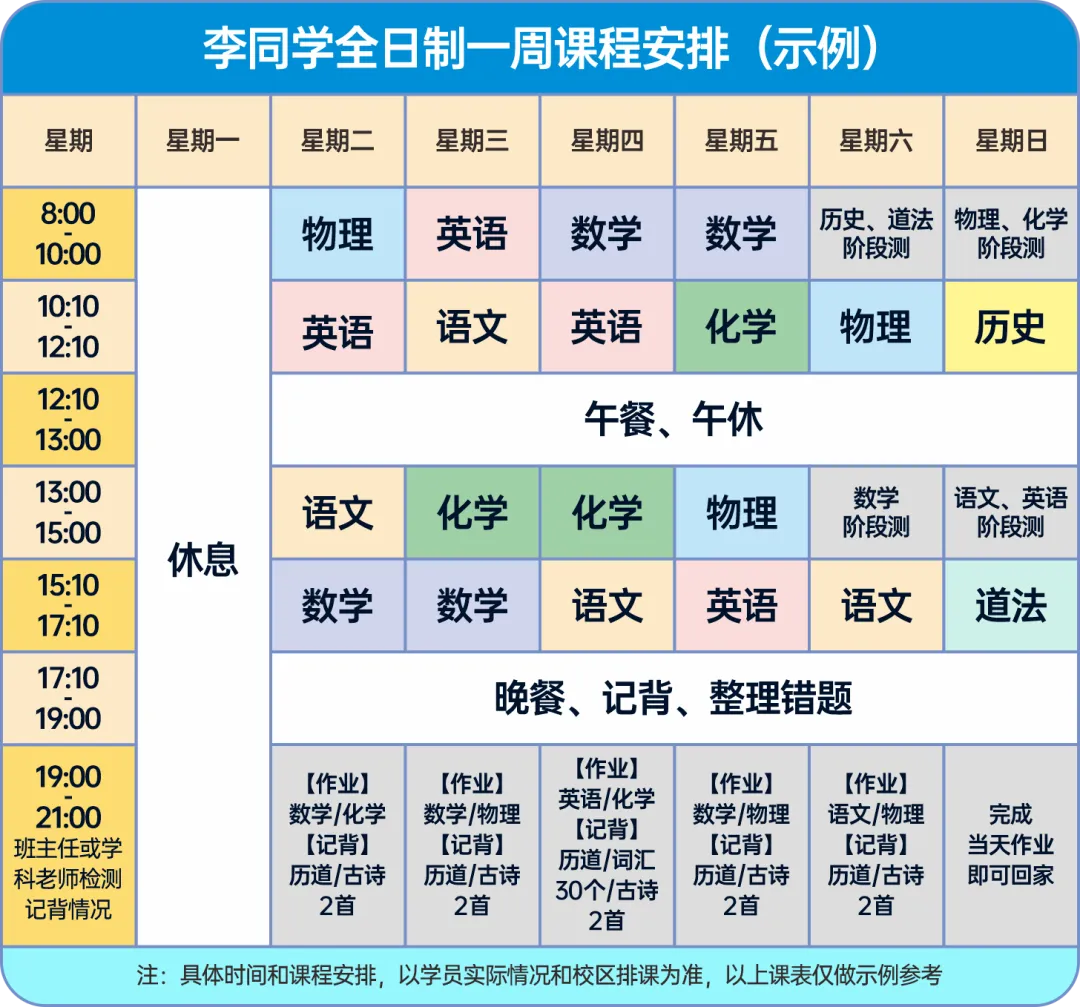 免费自习陪读:课后可留在校区继续学习,有不懂的问题可以及时答疑,班主任会维护校区纪律,引导并检查错题本使用情况。