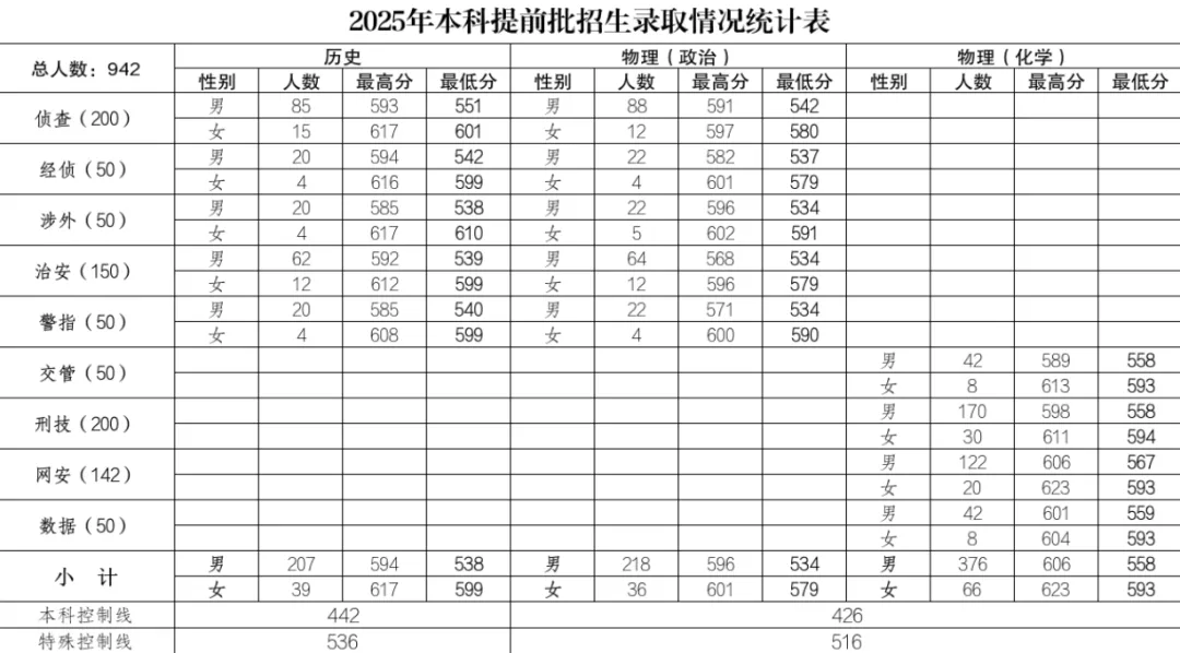 历史方向:最低538,最高593(可上中国刑事警察学院,距中国人民公安大学差2分)