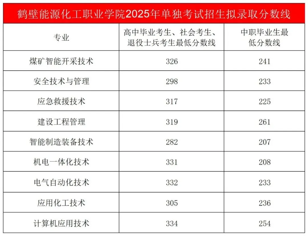 当前位置:首页>录取分数线>鹤壁能源化工职业学院2025年单招录取分数线