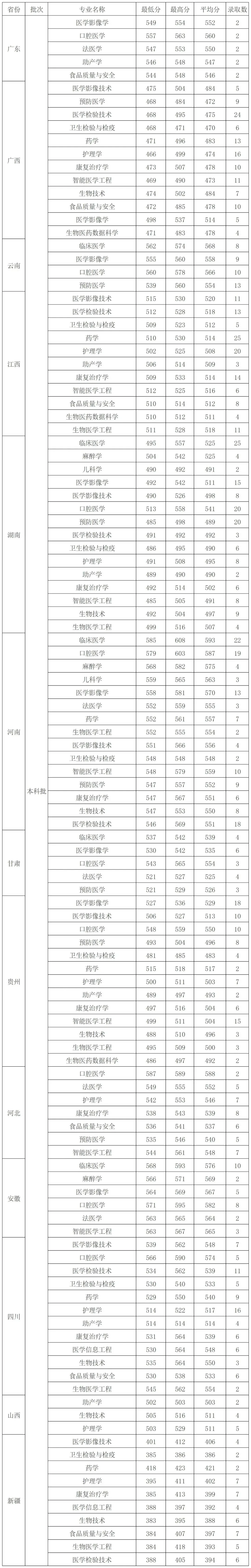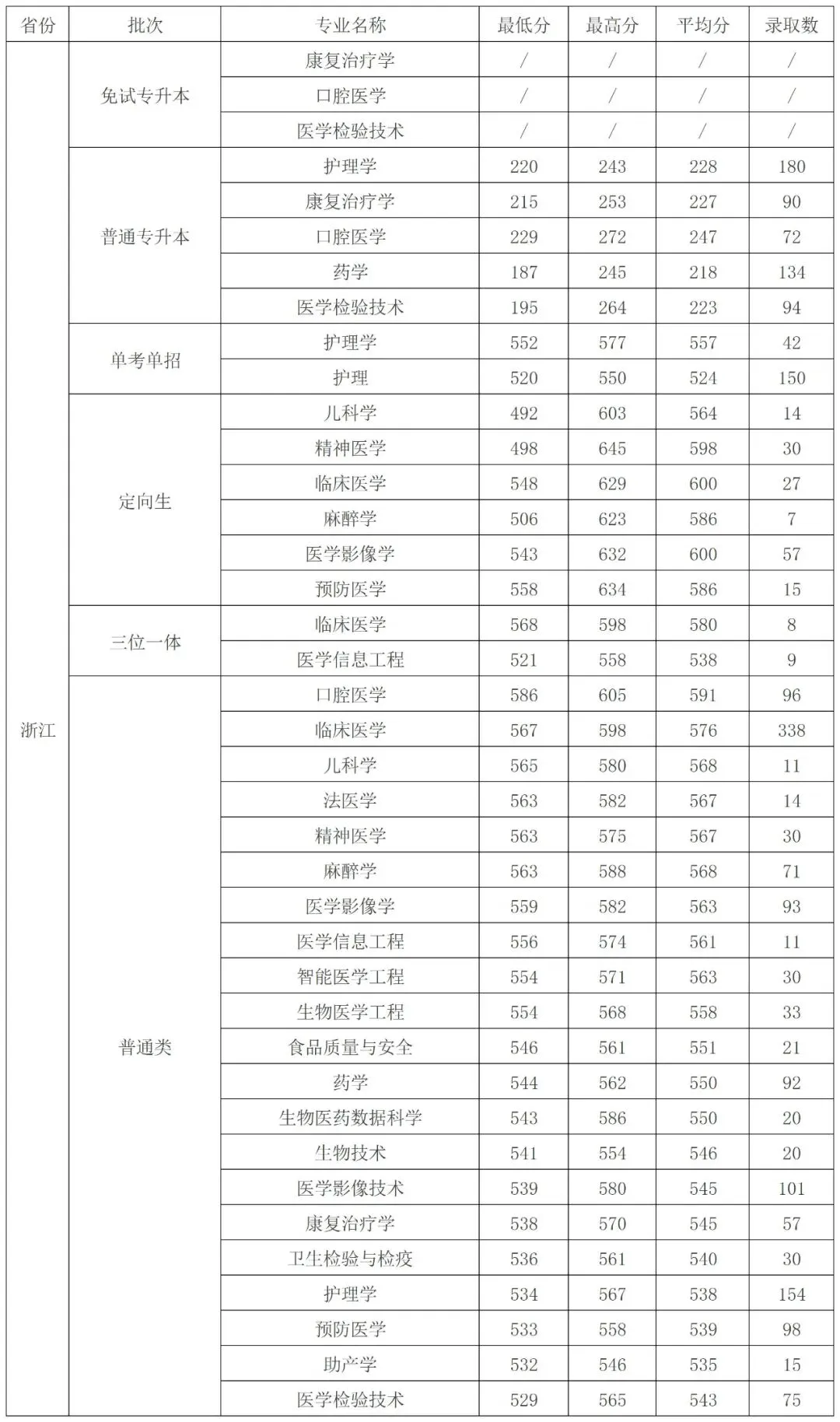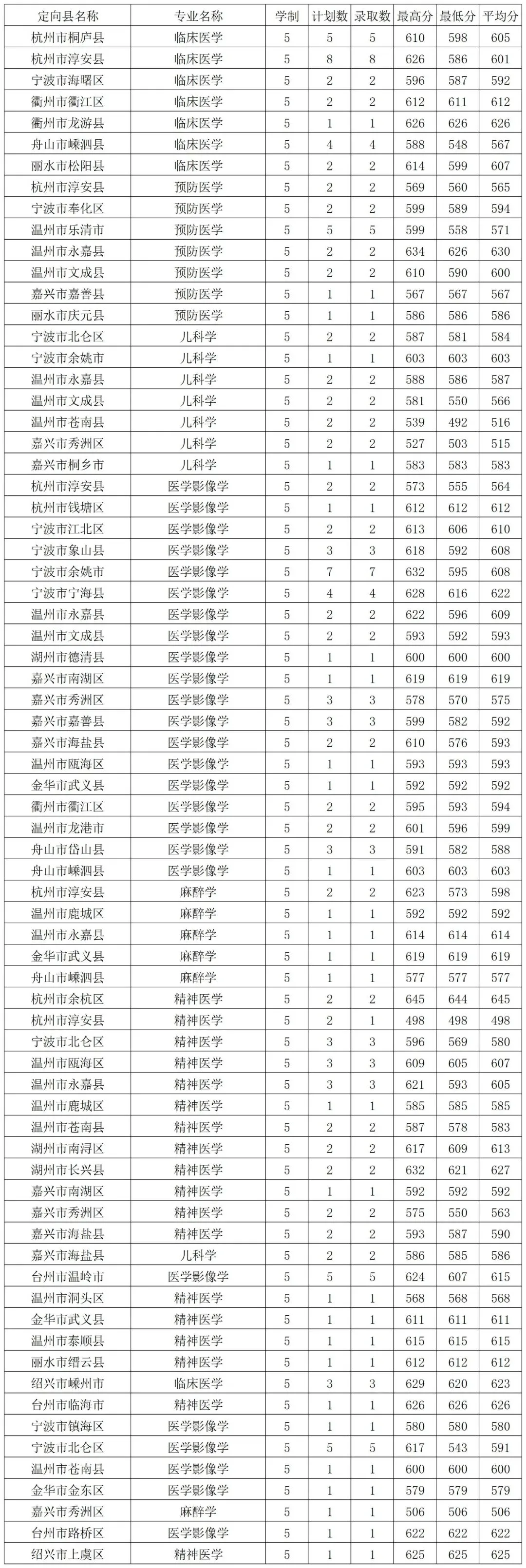 杭州医学院2025年医学定向生分地区录取分数线