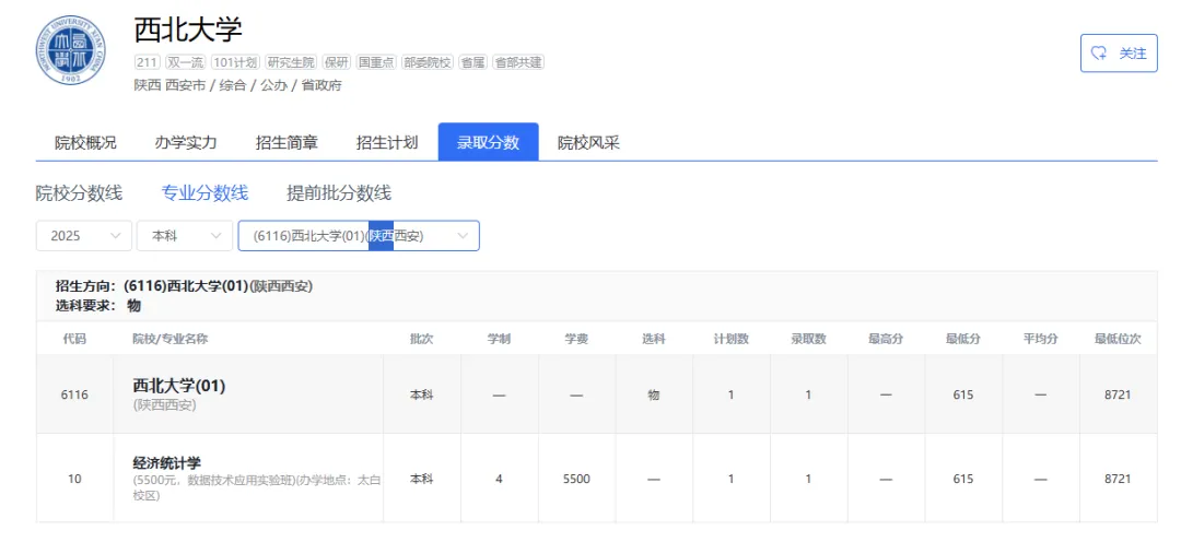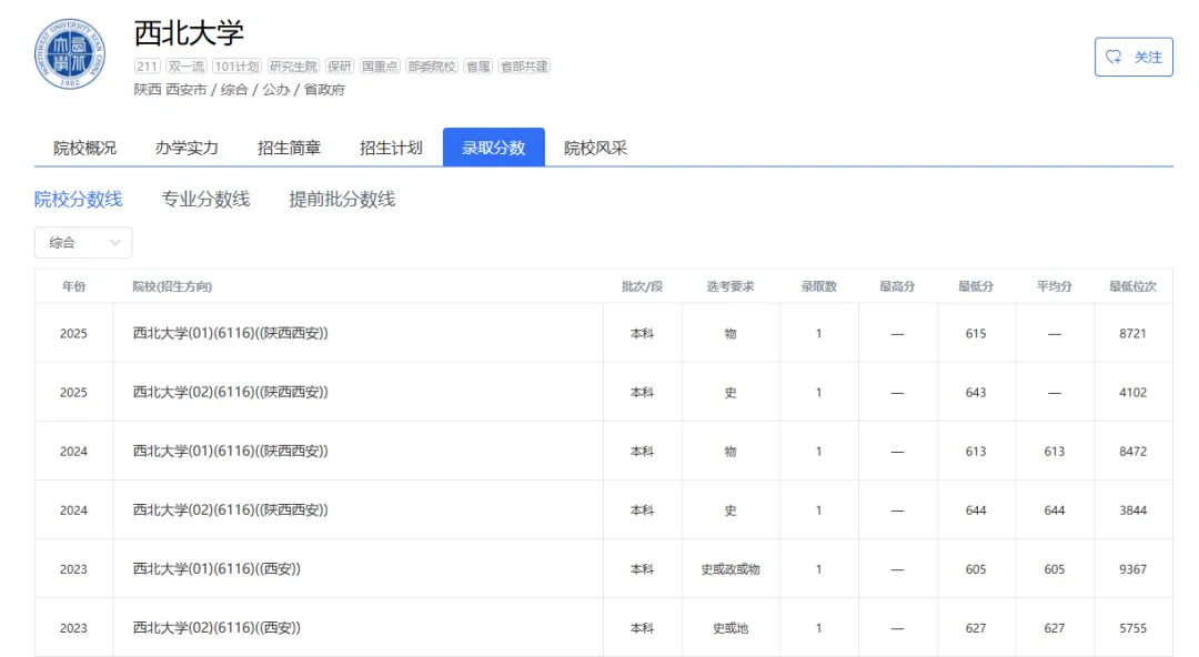 2025年|陕西师范大学在京最低录取分数线及位次排名