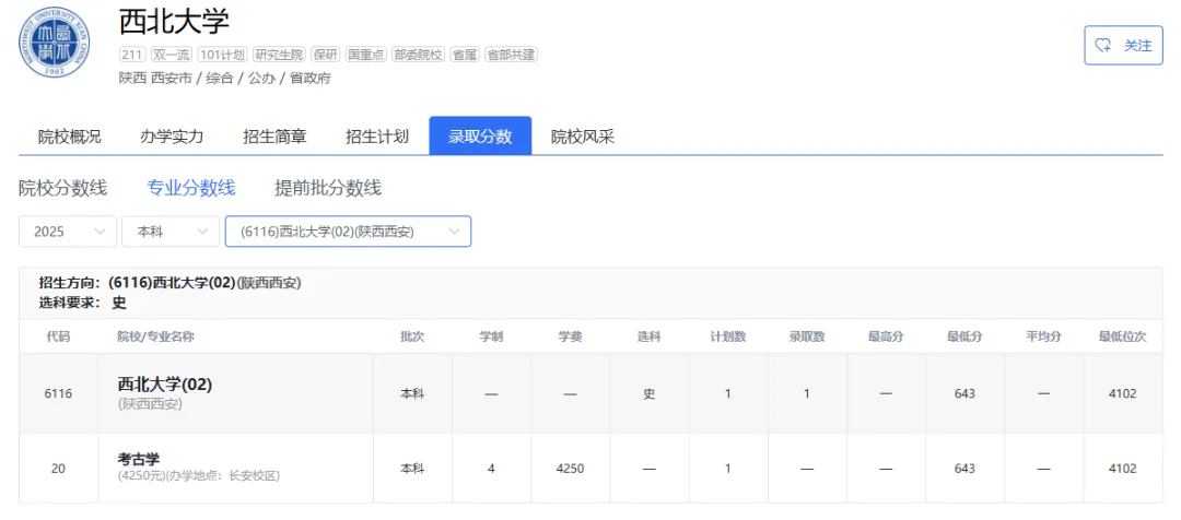 2025年|长安大学在京最低录取分数线及位次排名