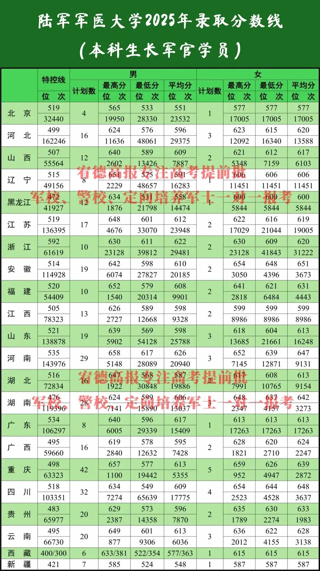 陆军军医大学2025年录取分数线来啦!宥德高报为大家分享,供家长参考。宥德高报专注高考提前批军校、警校、定向培养军士一对一报考指导,帮助学子圆梦军警校!