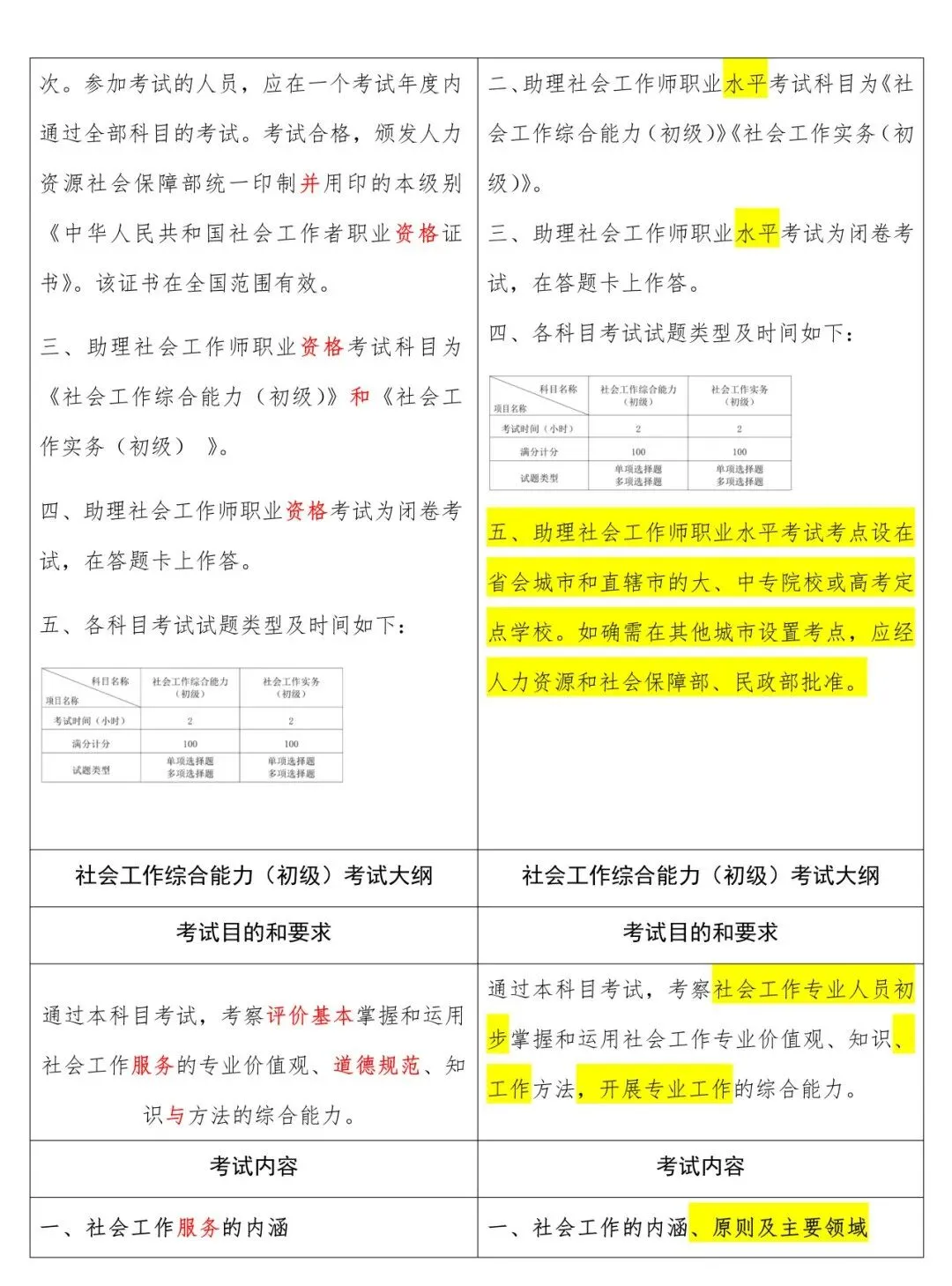 初级新旧大纲对照表