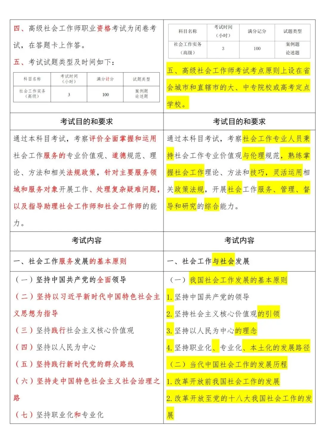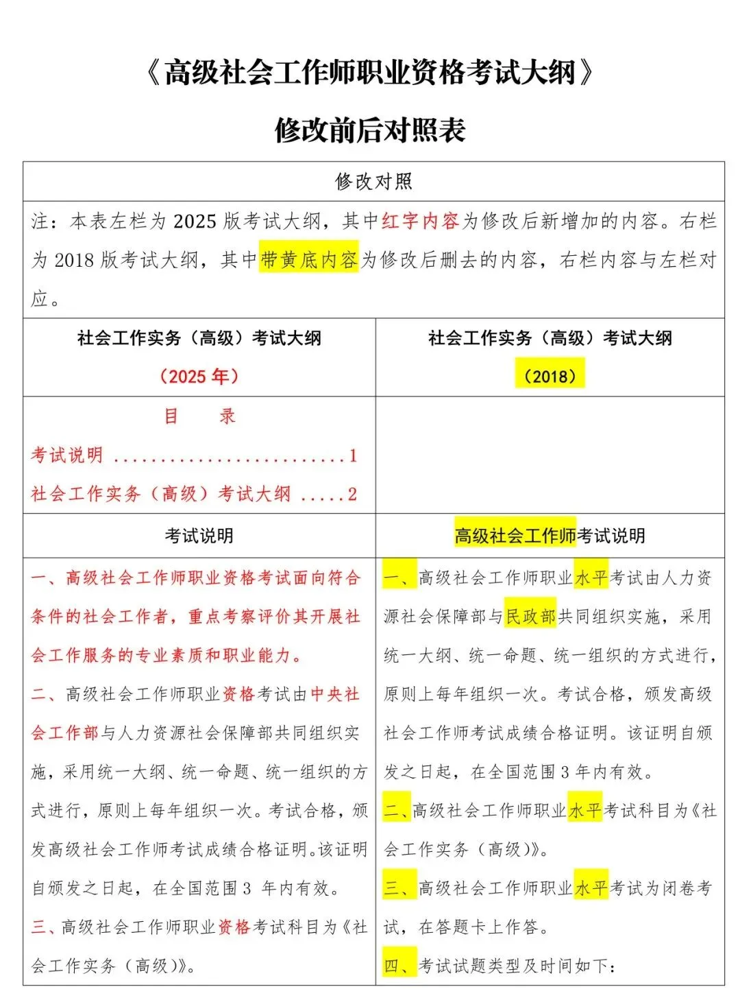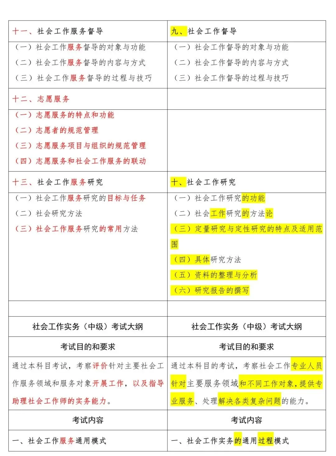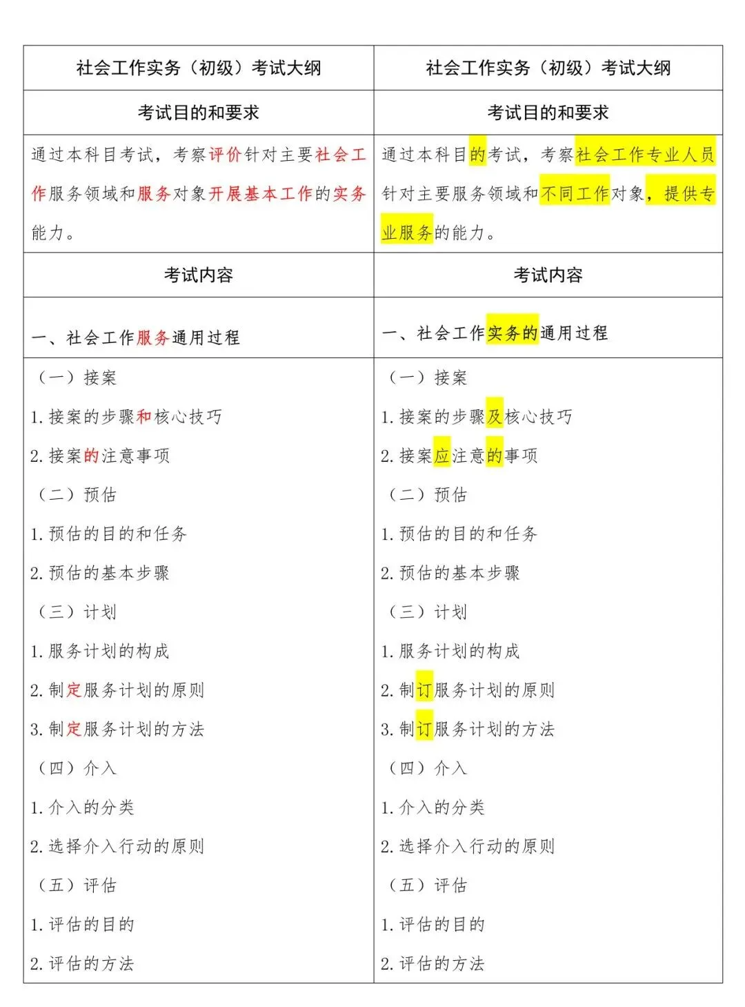高级新旧大纲对照表