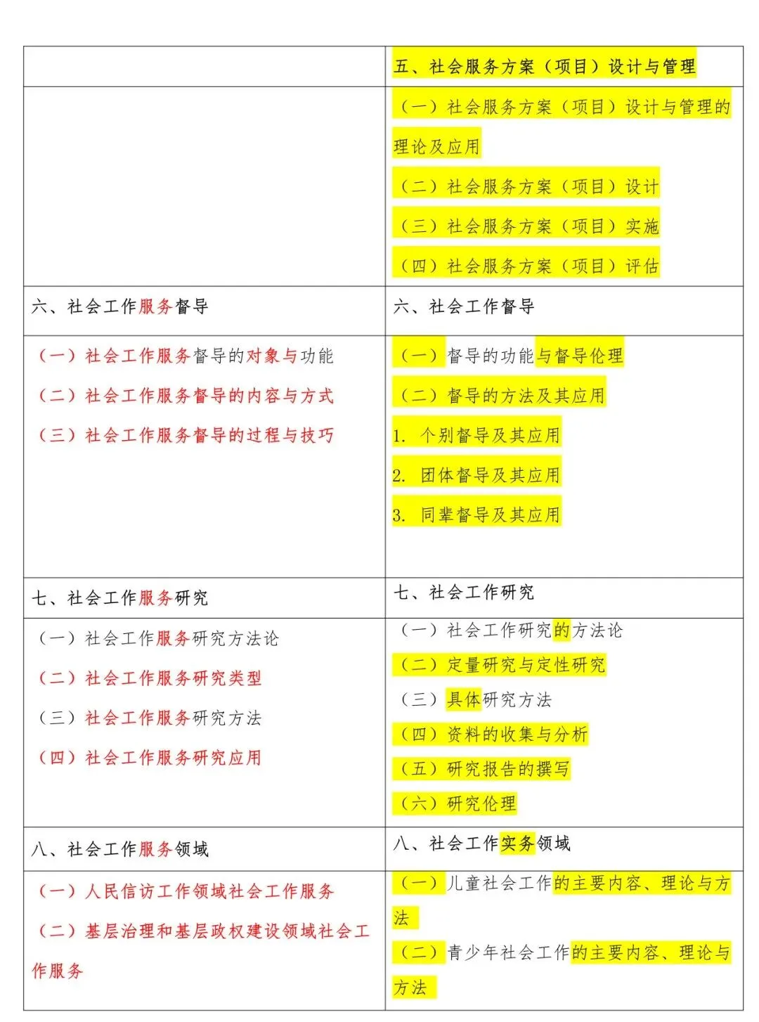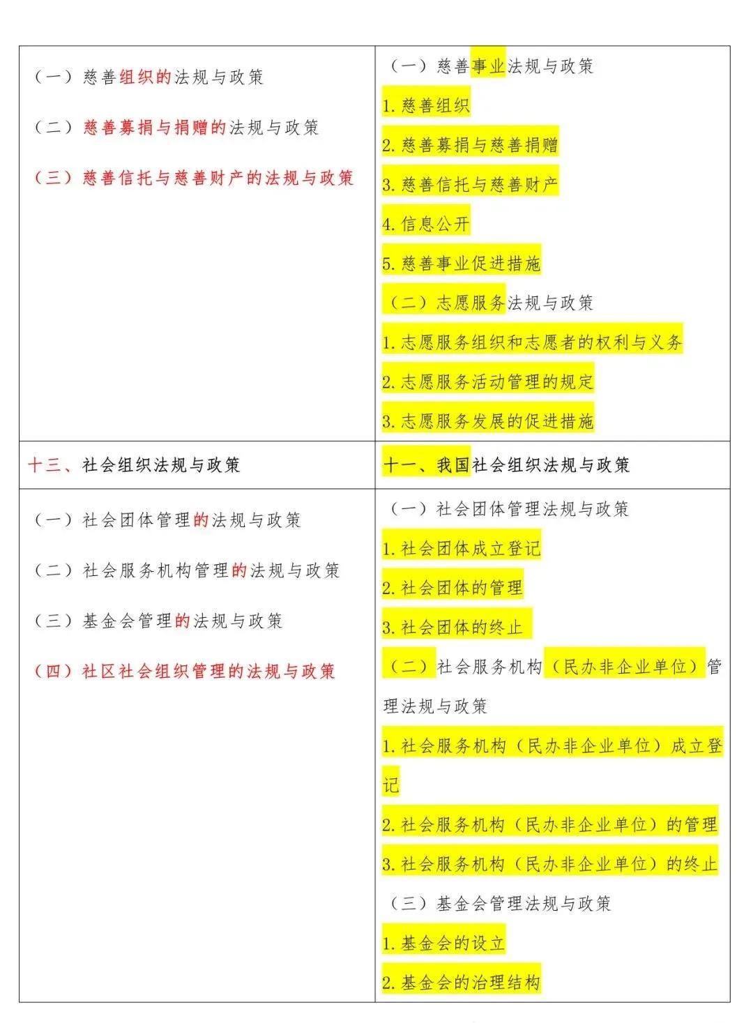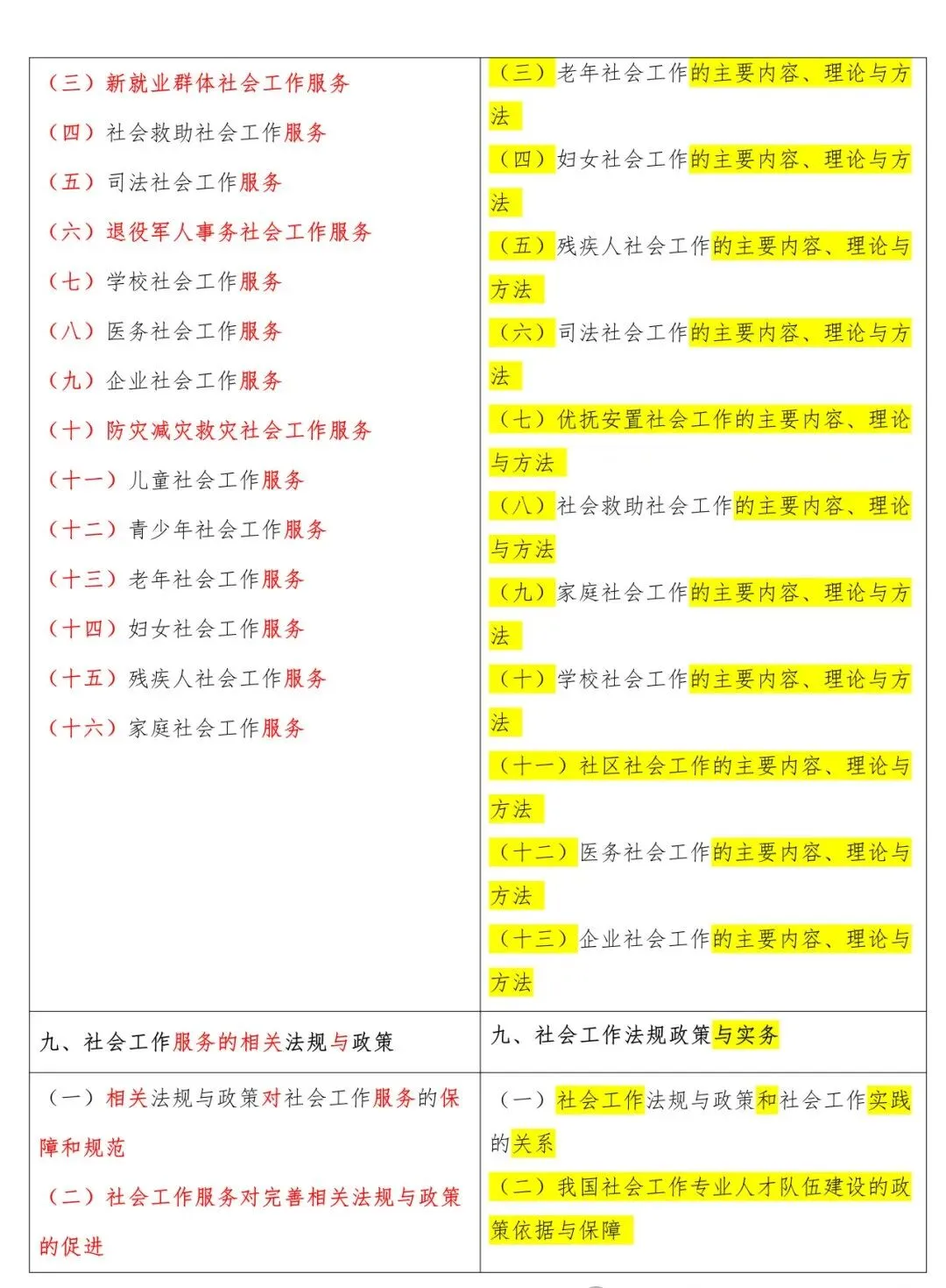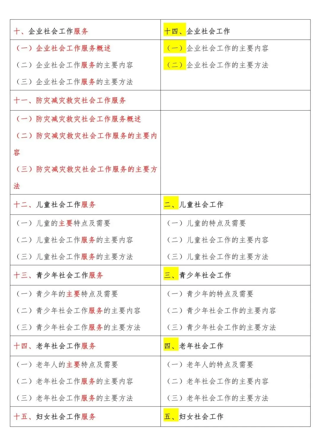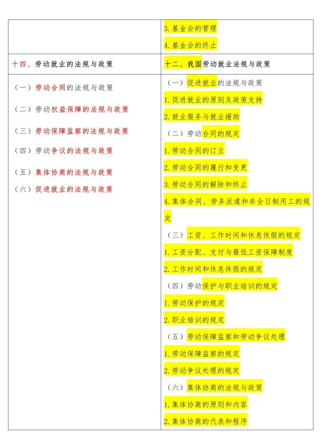 高级新旧大纲对照表